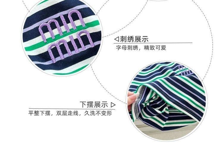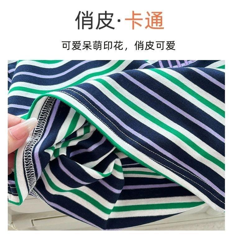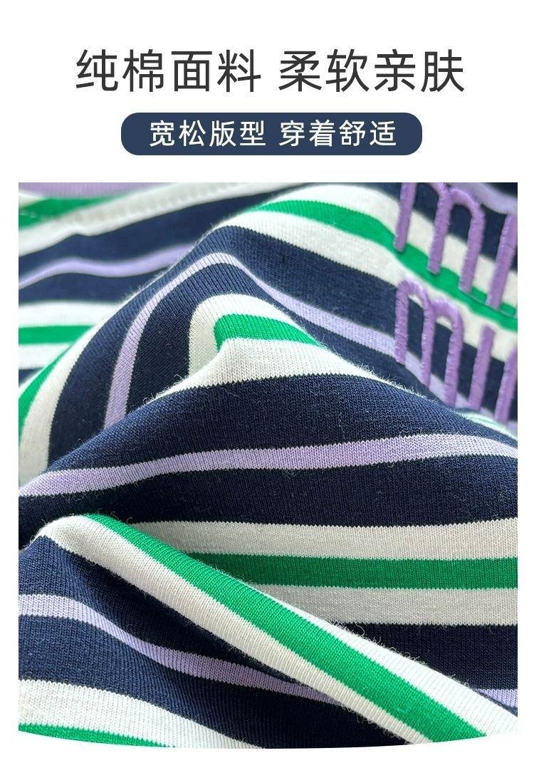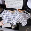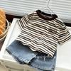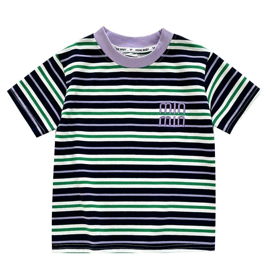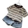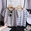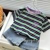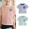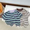 Control de rayas ~ camiseta de manga corta a rayas de color retro de verano para niños, algodón, cuello redondo, media manga, a la moda