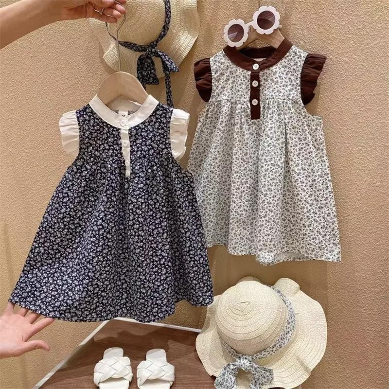 Vestido de Niña Floral Verano 2025 Nuevo Estilo Coreano Estilo Occidental Niña Bebé Delgado Sin Mangas Vestido de Princesa 6522
