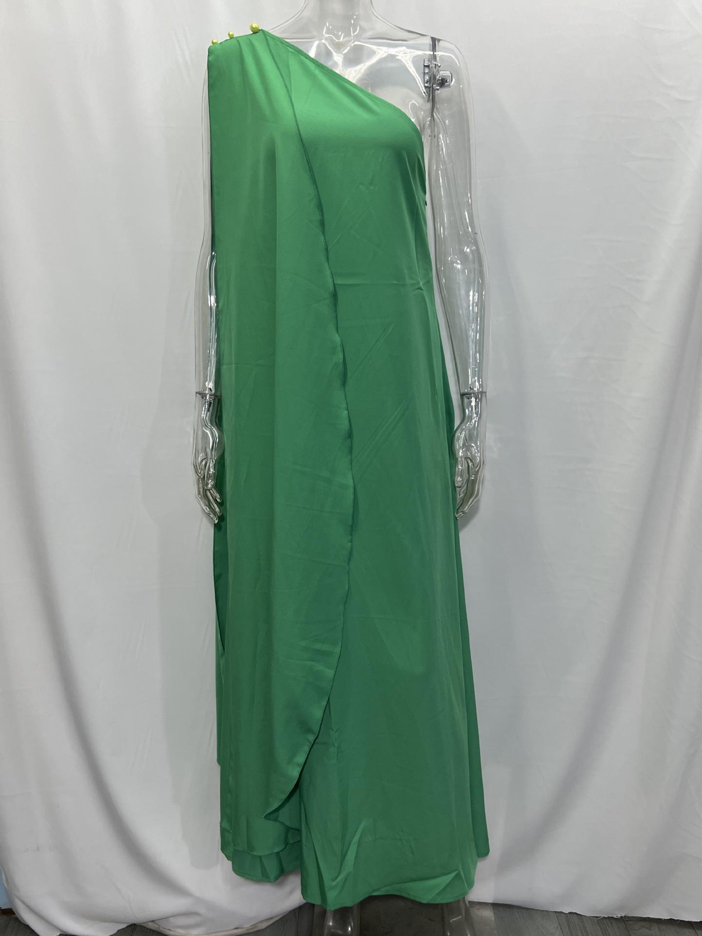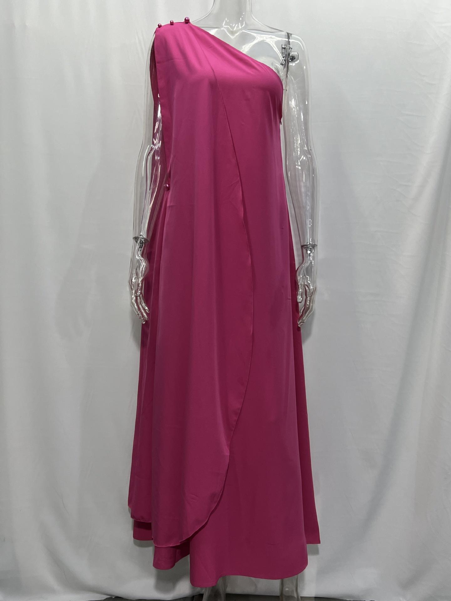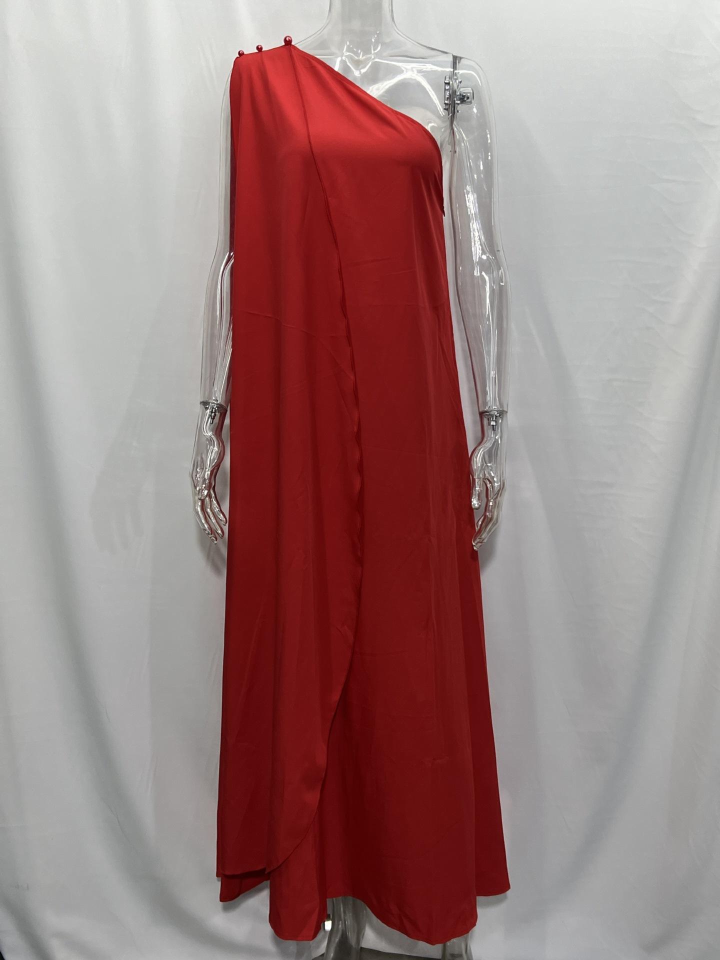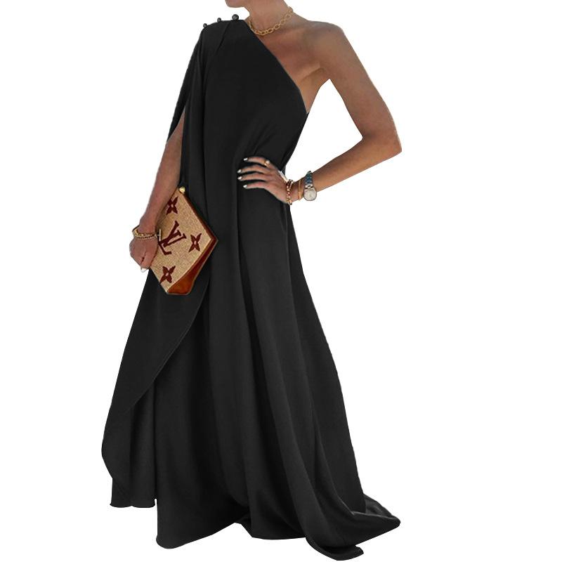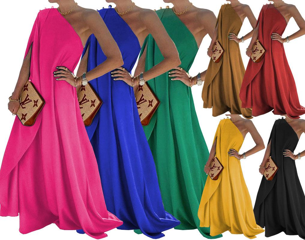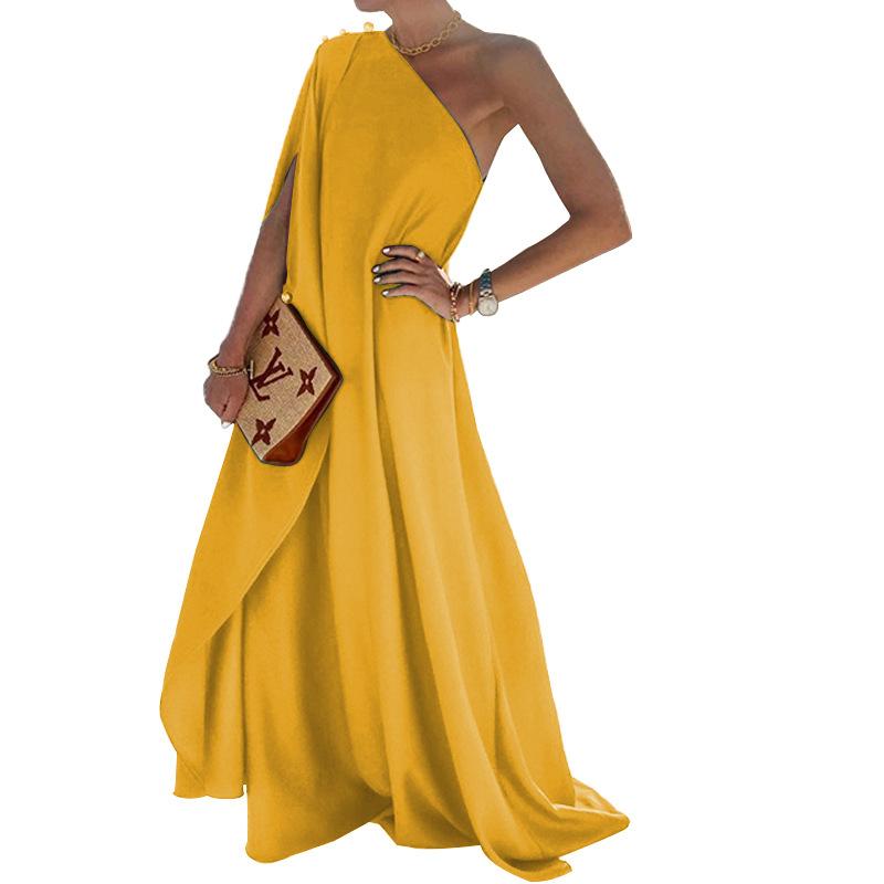 Ropa de Verano Nueva 2023 para Mujer Transfronteriza, Vestido Largo Suelto Monohombro de Color Puro a la Moda, Vestido Estilo Reina
