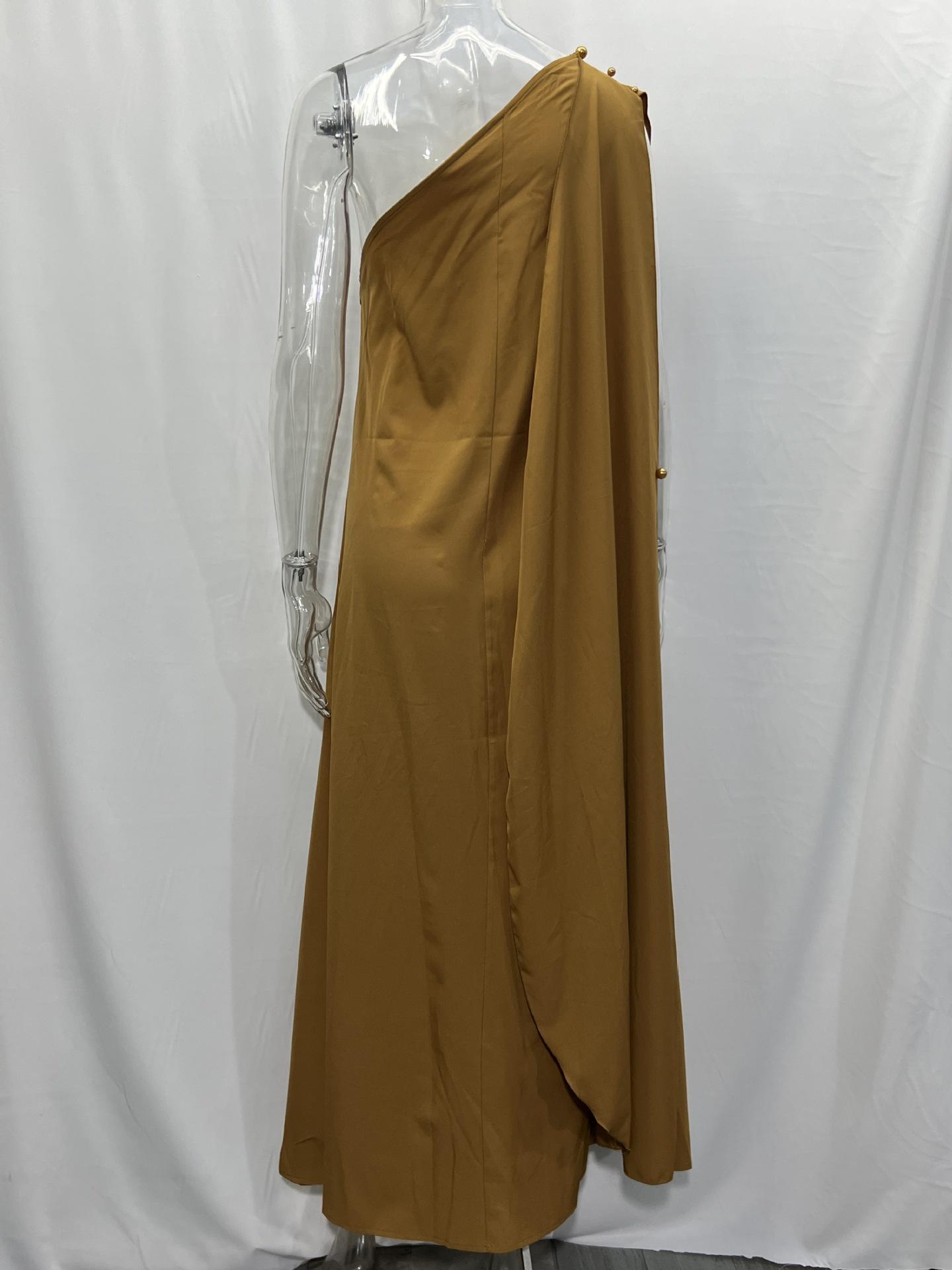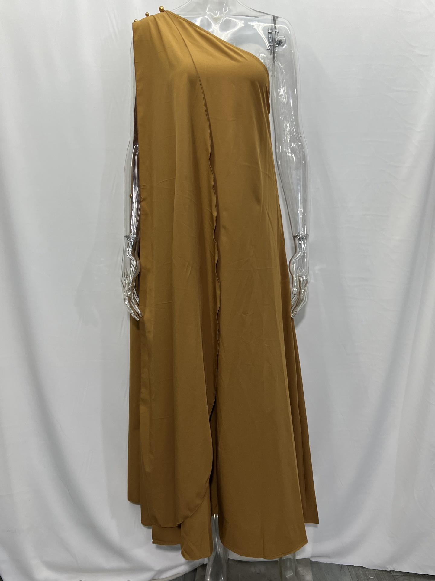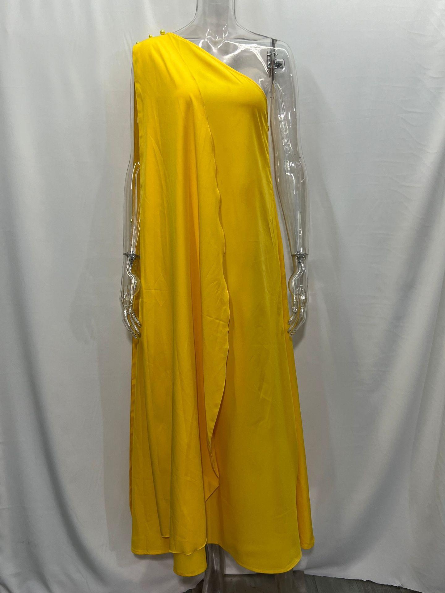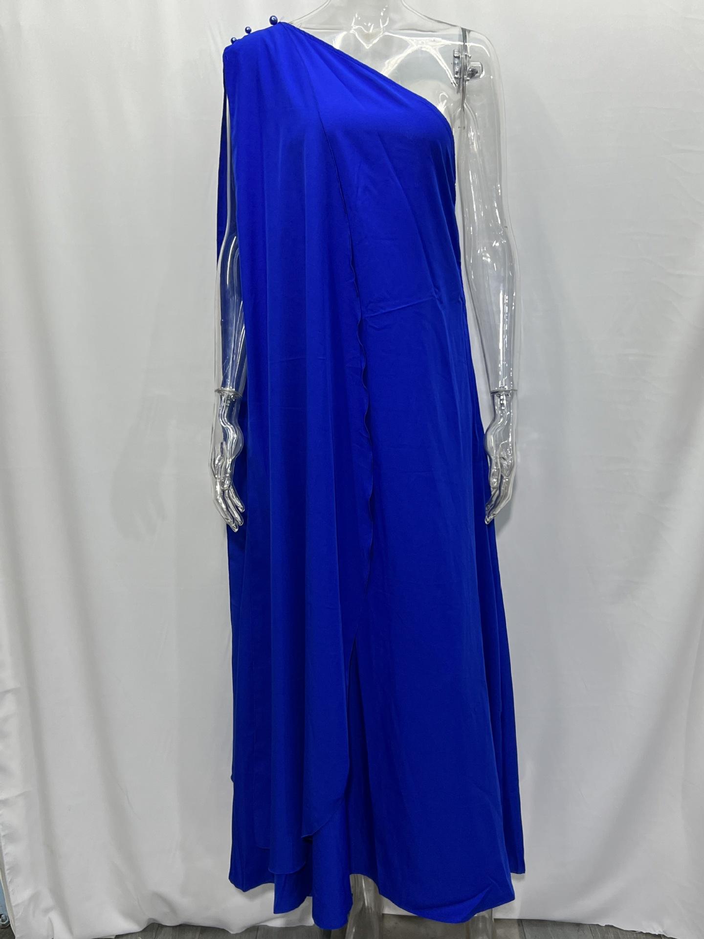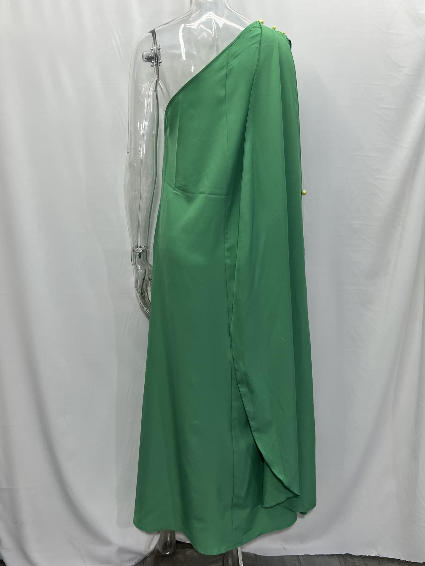 Ropa de Verano Nueva 2023 para Mujer Transfronteriza, Vestido Largo Suelto Monohombro de Color Puro a la Moda, Vestido Estilo Reina