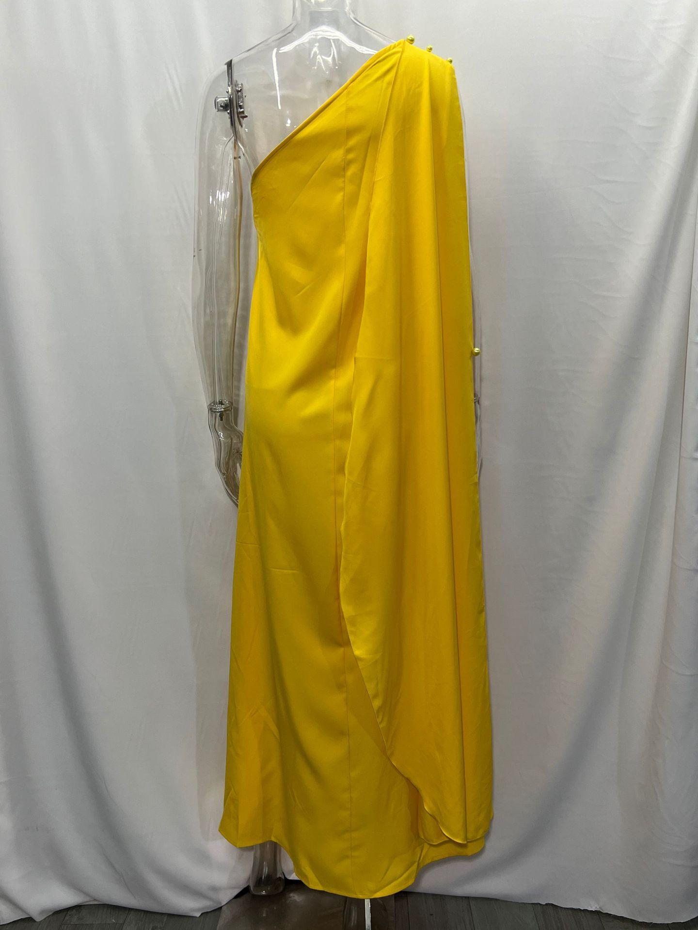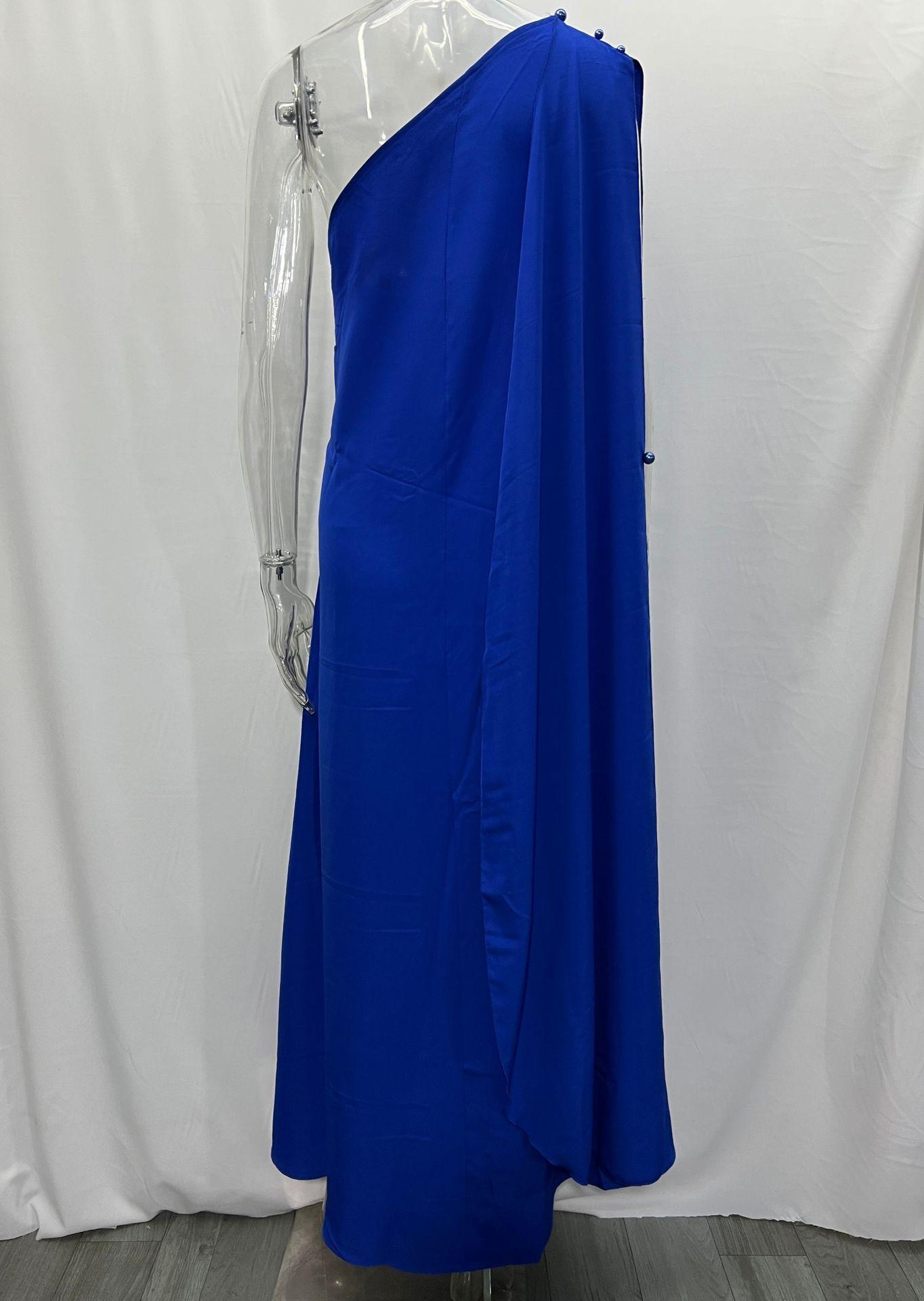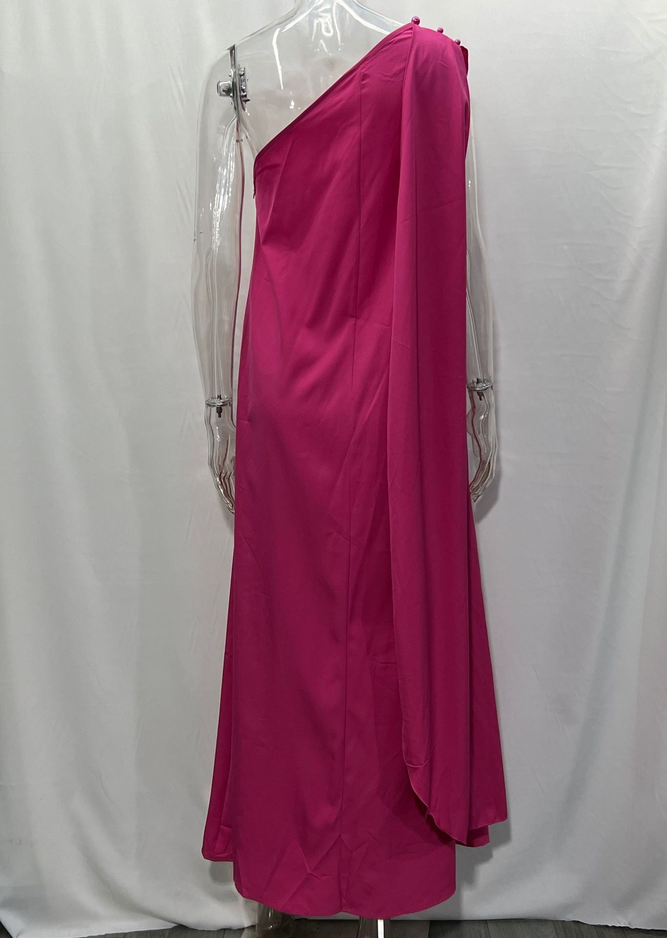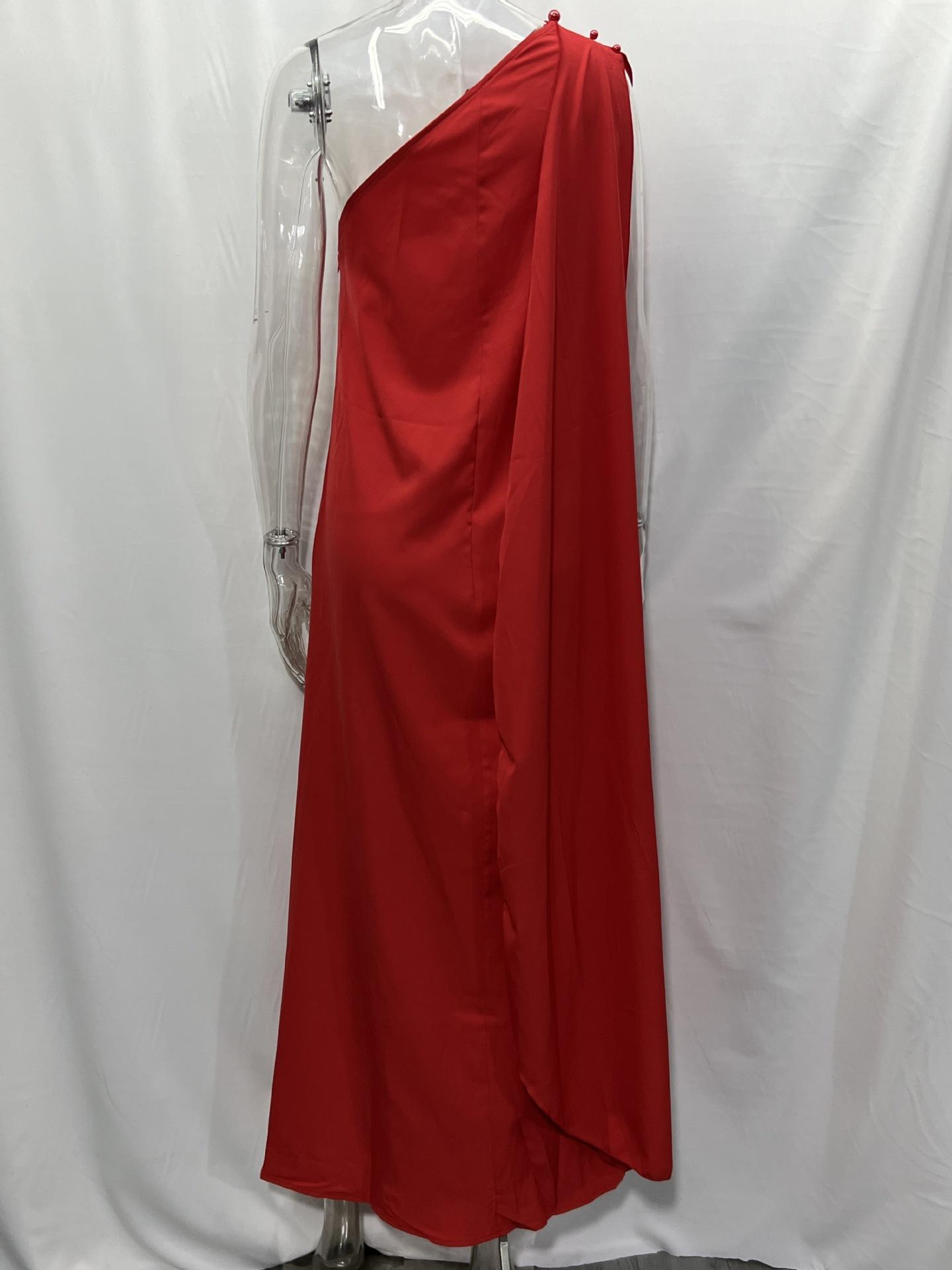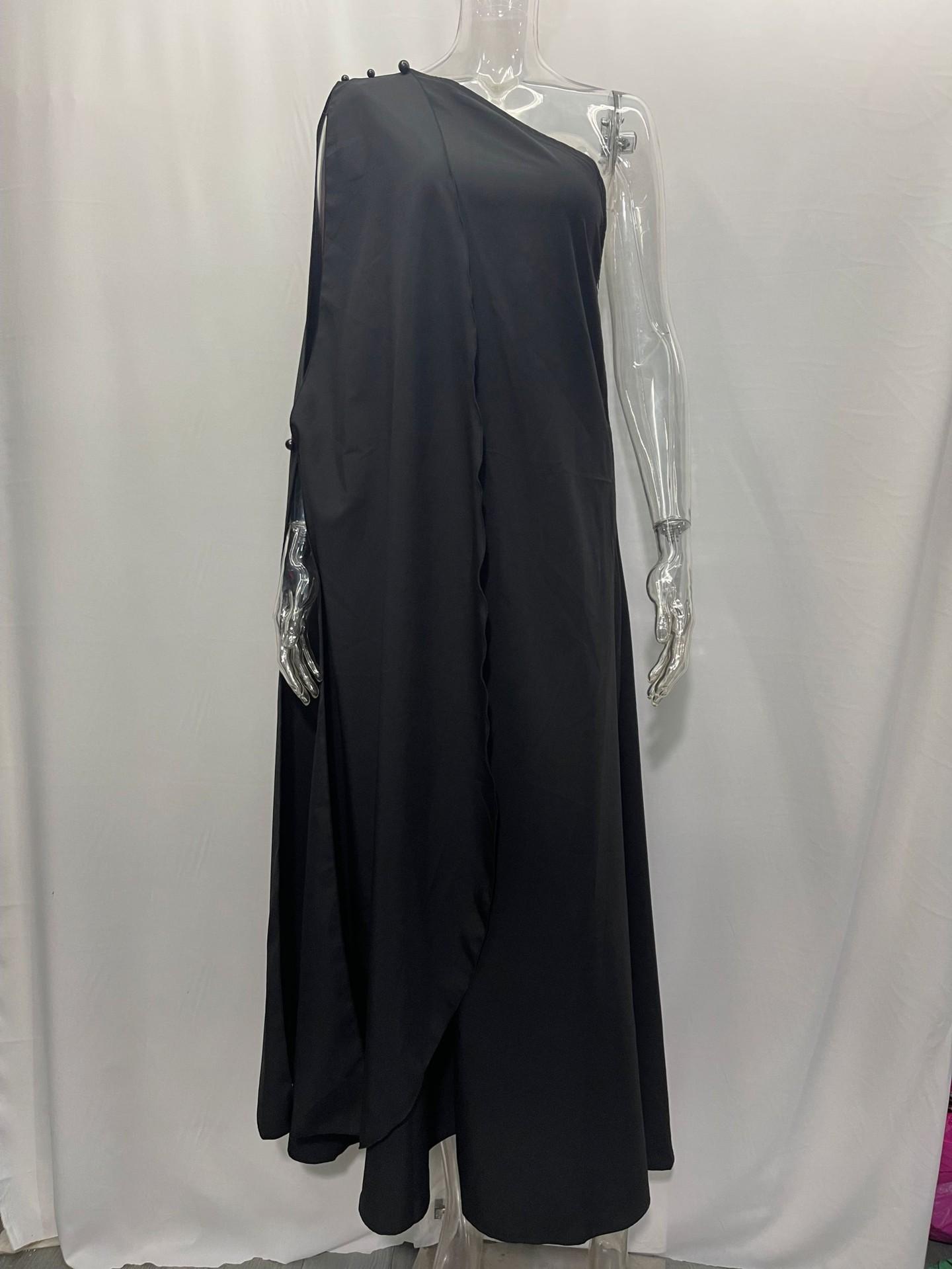 Ropa de Verano Nueva 2023 para Mujer Transfronteriza, Vestido Largo Suelto Monohombro de Color Puro a la Moda, Vestido Estilo Reina