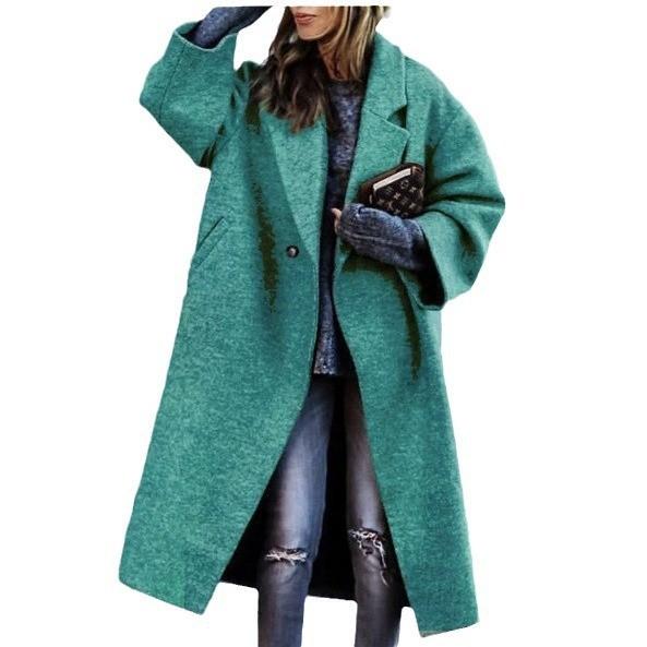 Abrigo Largo de Lana Europeo y Americano de Otoño e Invierno Color Elegante Ropa de Trabajo sin Cinturón Solapa Suelto Lana Verde Abrigo para Mujeres