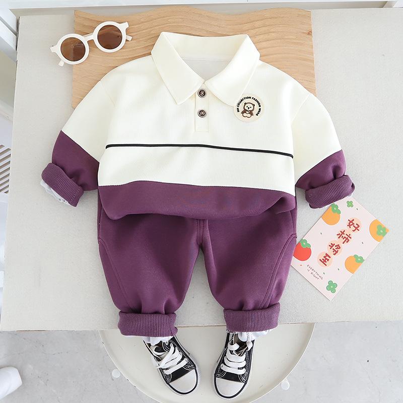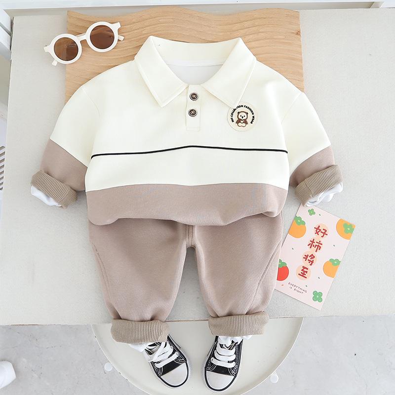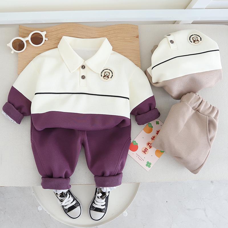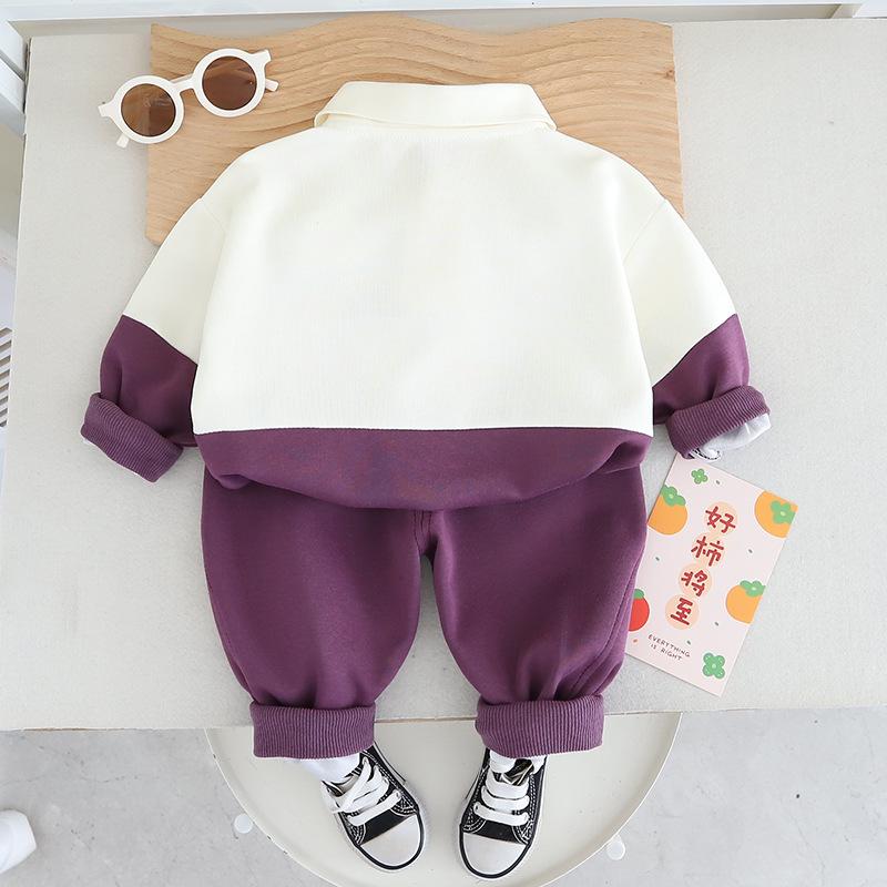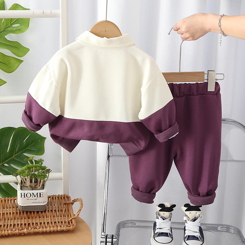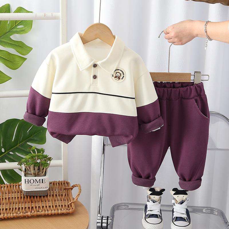 Traje de estilo occidental para niño Vestido nuevo de primavera Ropa para niños Bebé Primavera y Otoño Moda Combinación de colores Casual Guapo Conjunto de dos piezas para niños Comercio exterior