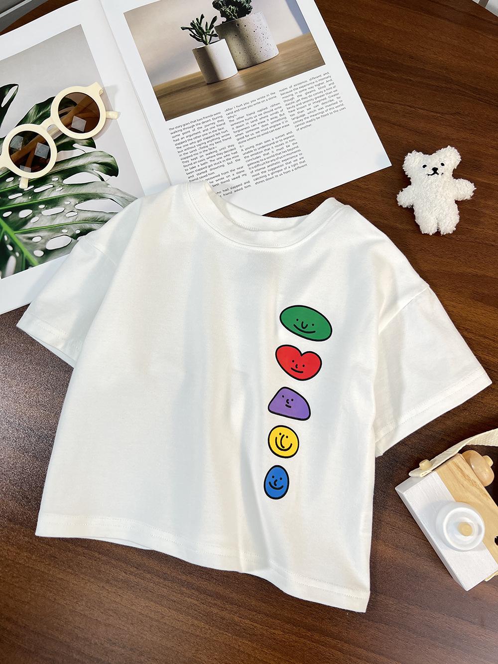 Ropa de Verano para Niños Estilo Coreano Ins Nuevas Blusas Lindas Simples Casuales Sueltas de Algodón de Verano de Manga Corta para Niños y Niñas