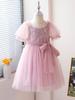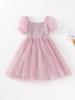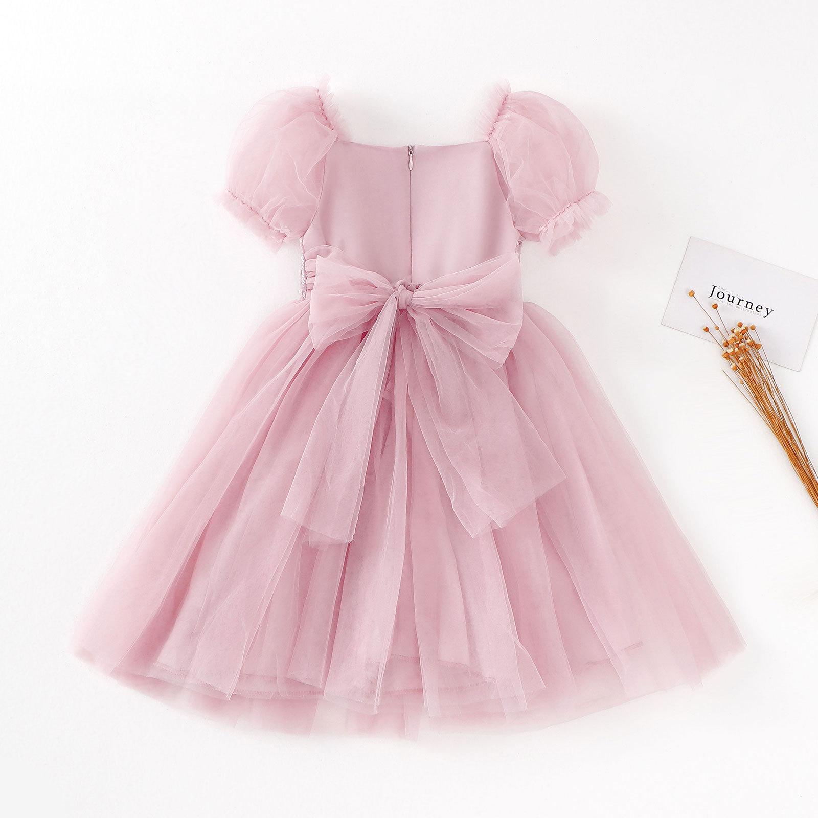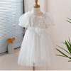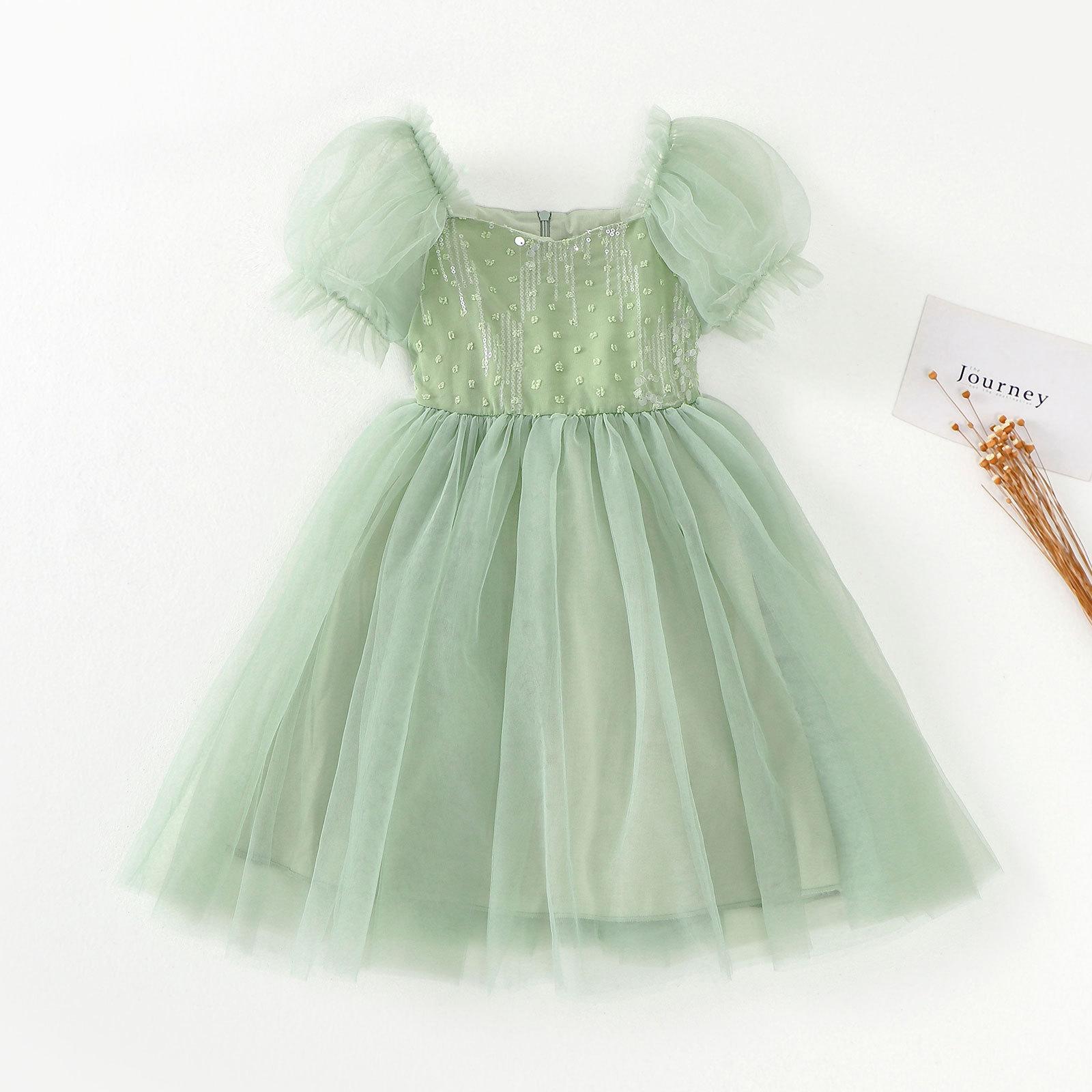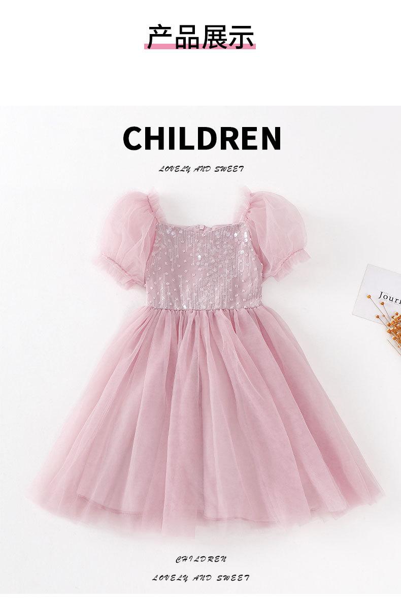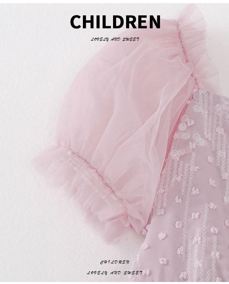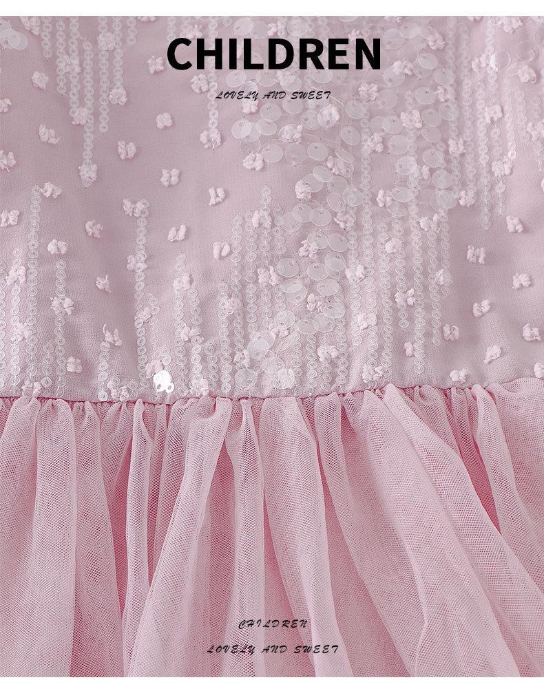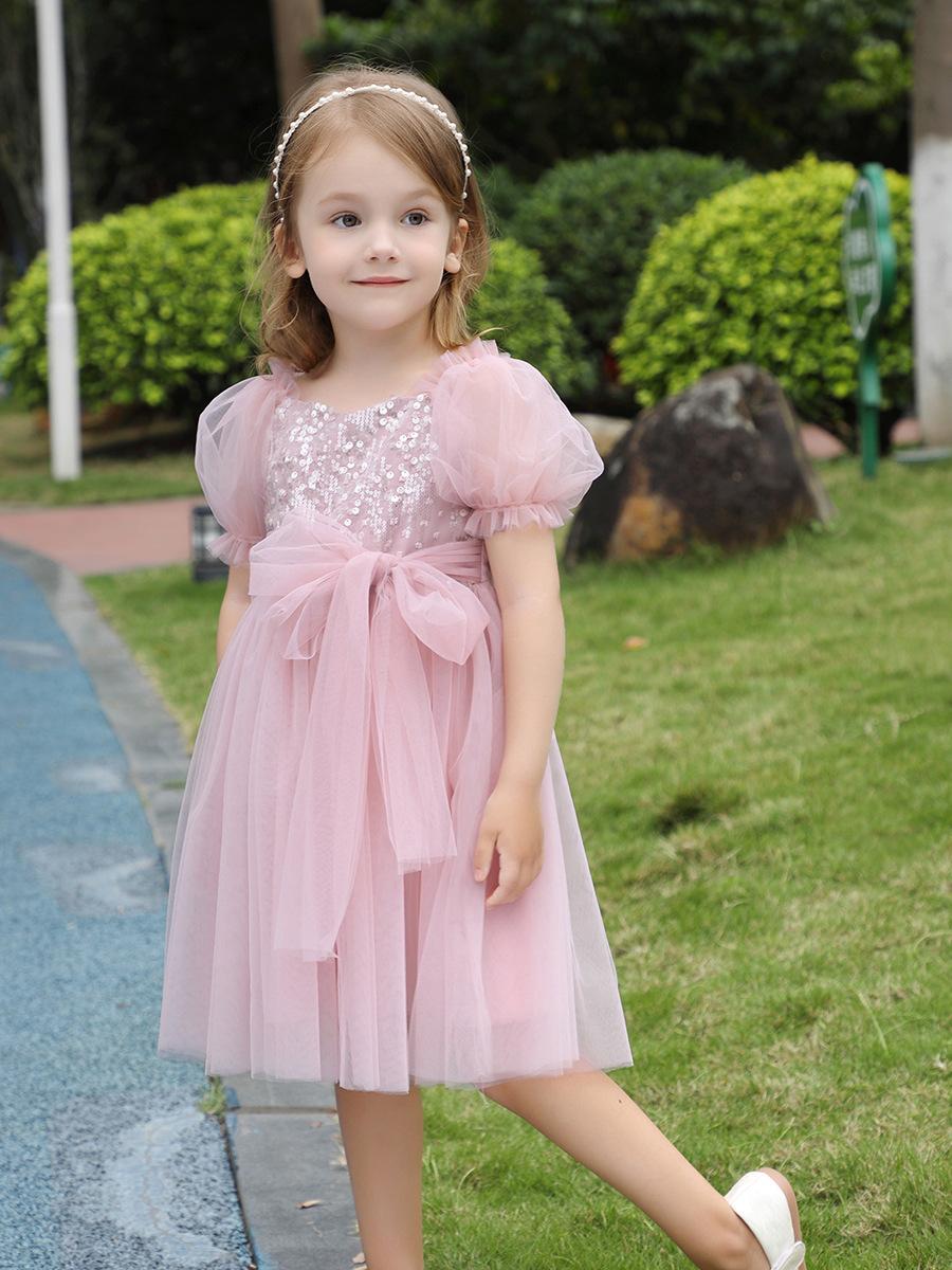 Vestido de Niña Verano Nuevo Estilo Vestido de Princesa para Niños Falda de Malla para Niña Vestido con Lazo de Lentejuelas Ropa para Niños