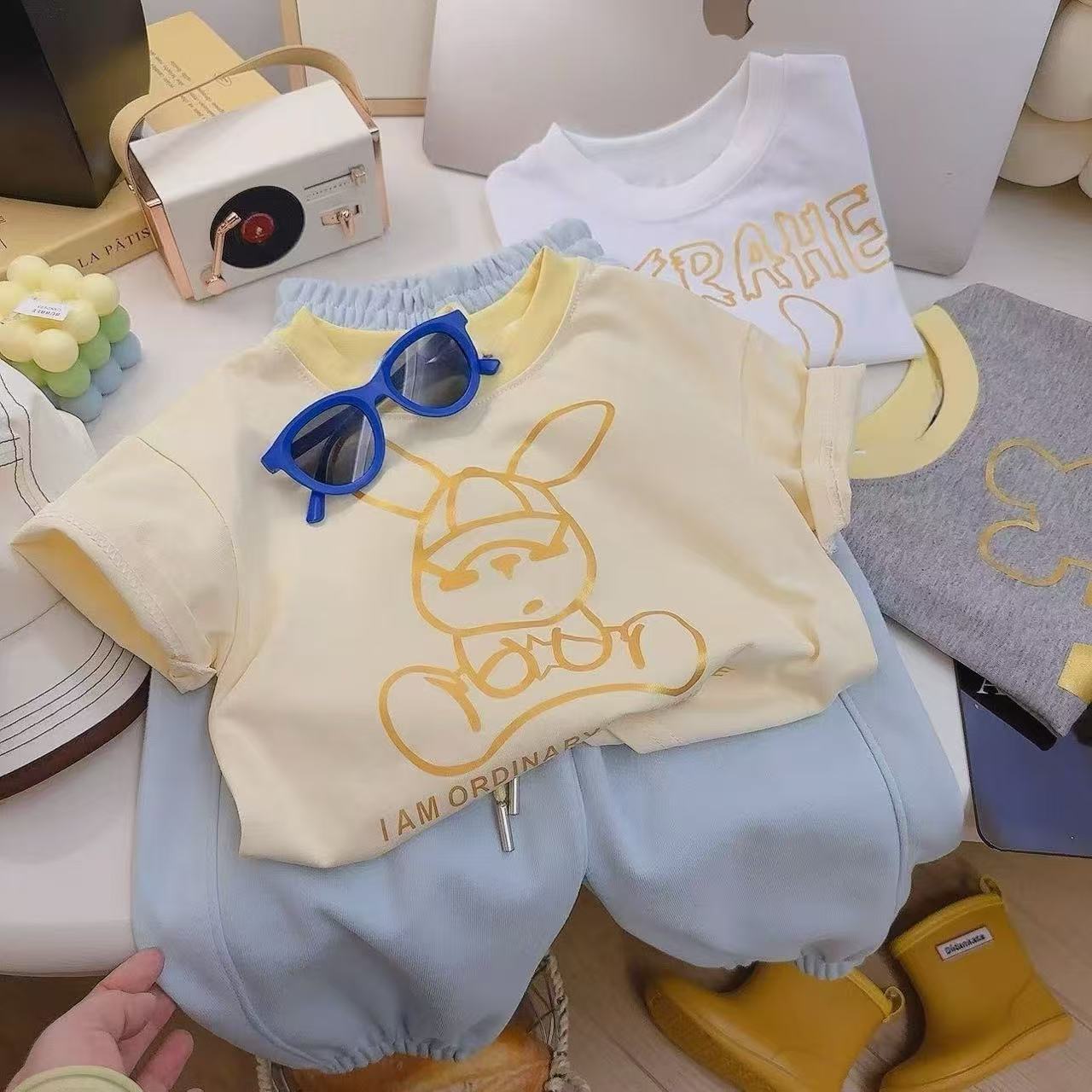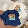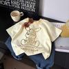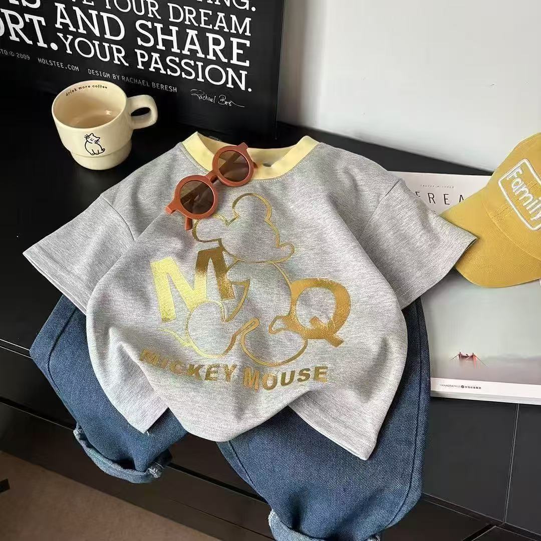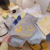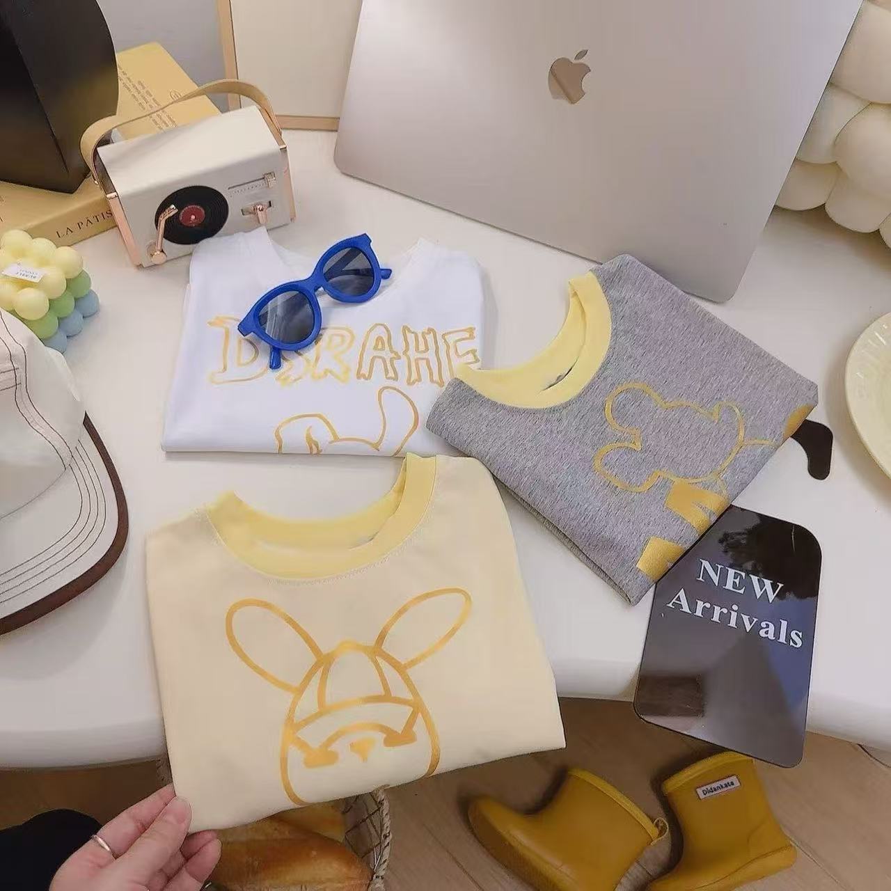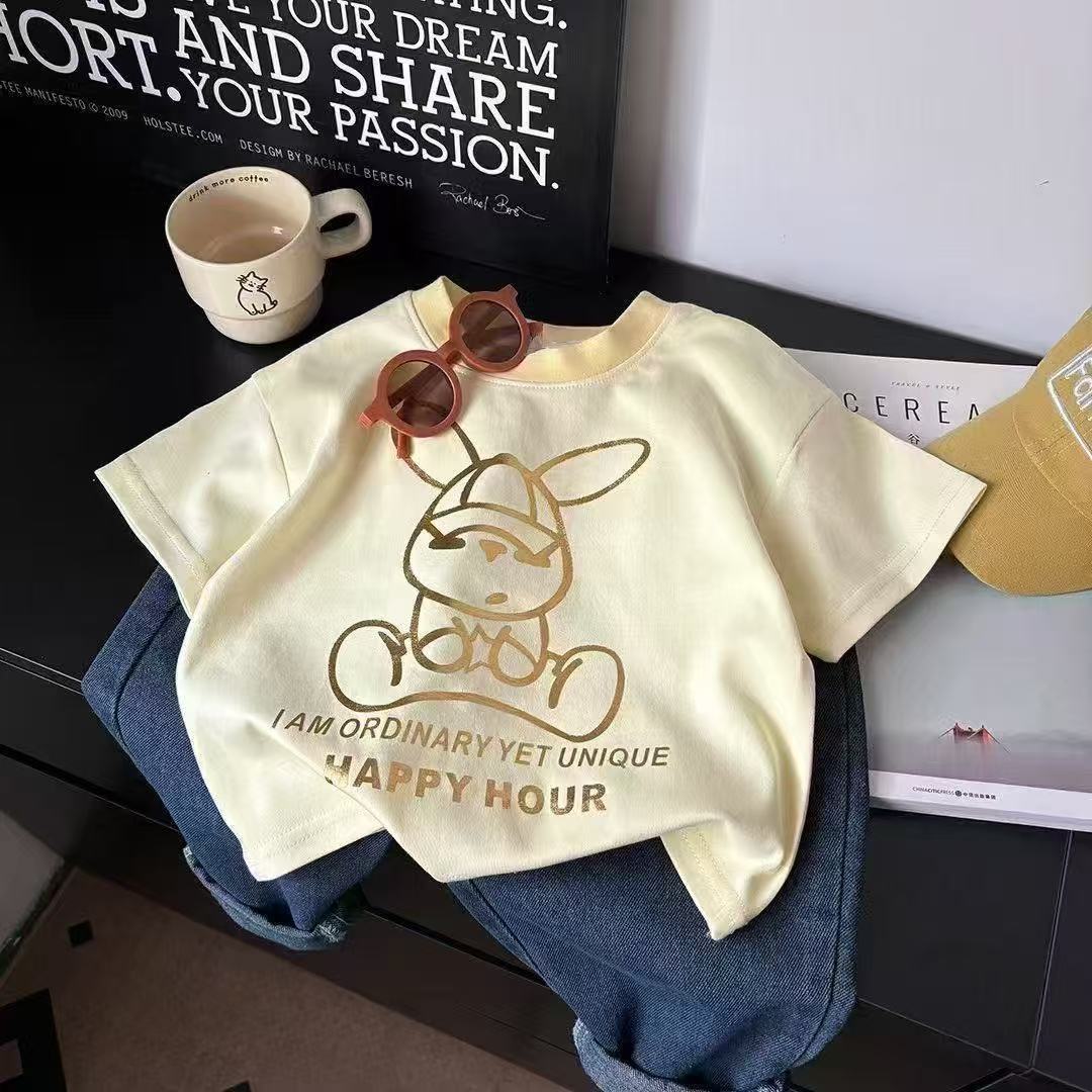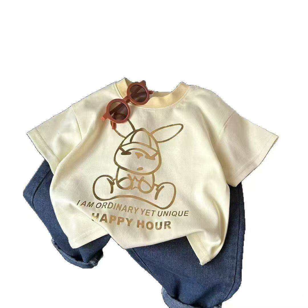 Camiseta de Algodón Puro de Manga Corta para Niños 2025 Nuevo Estilo Niñas y Niños Verano Dibujos Animados Estampado Dorado Bebé Top Estilo Coreano