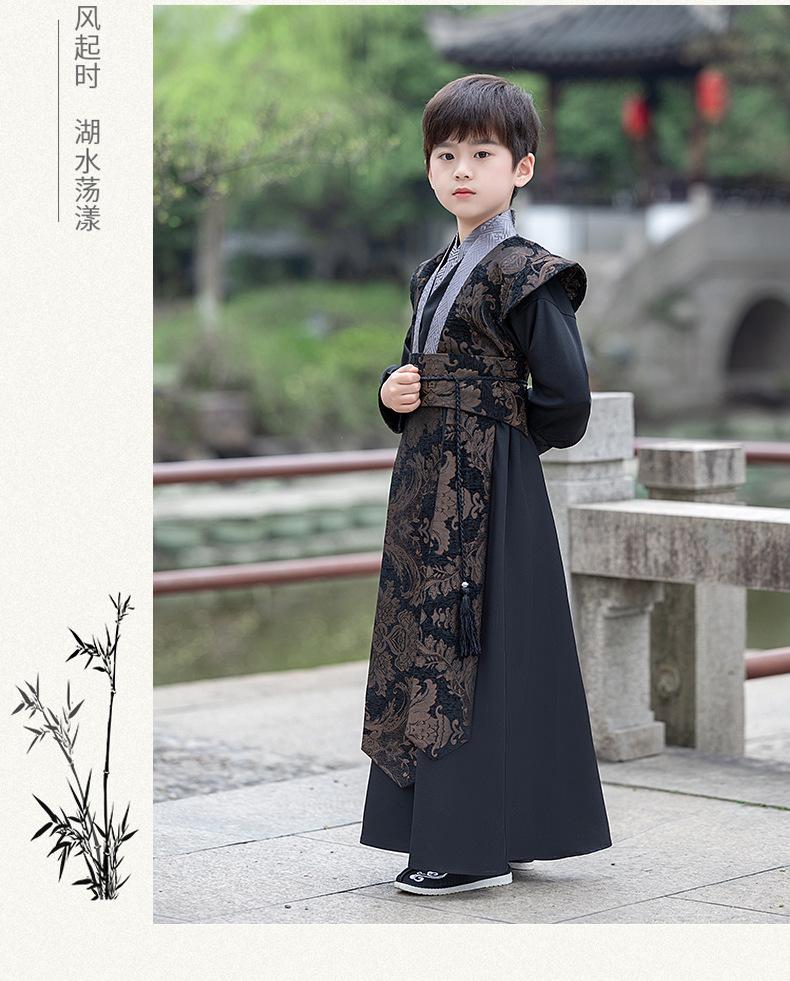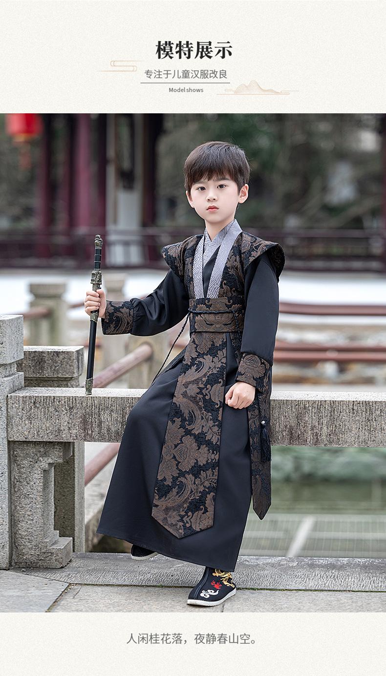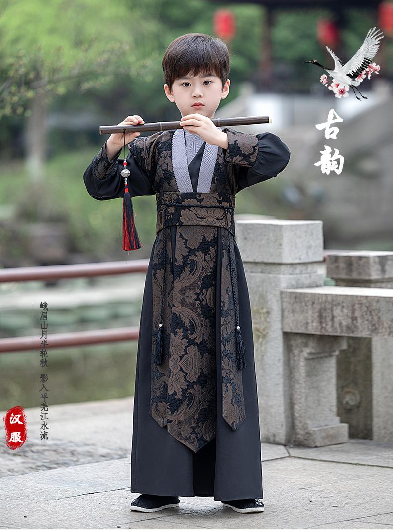 Hanfu para niños Traje Tang Estilo Chino Traje para niños Niños pequeños Traje de joven maestro Tesoro masculino Recitación de poesía Ropa de estudios chinos