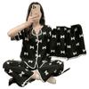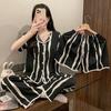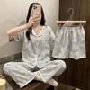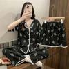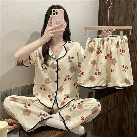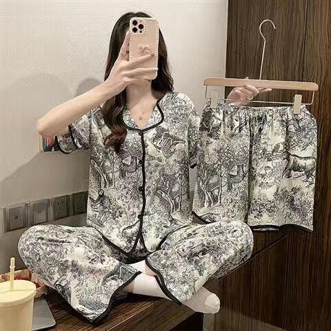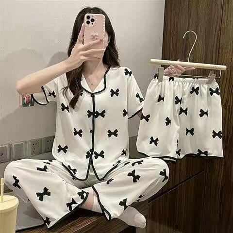 Pijama de Seda de Hielo para Mujer Verano Manga Corta Delgada Conjunto de Tres Piezas Talla Extra Gordo mm 100kg Lindo Traje de Dibujos Animados Ropa para el Hogar