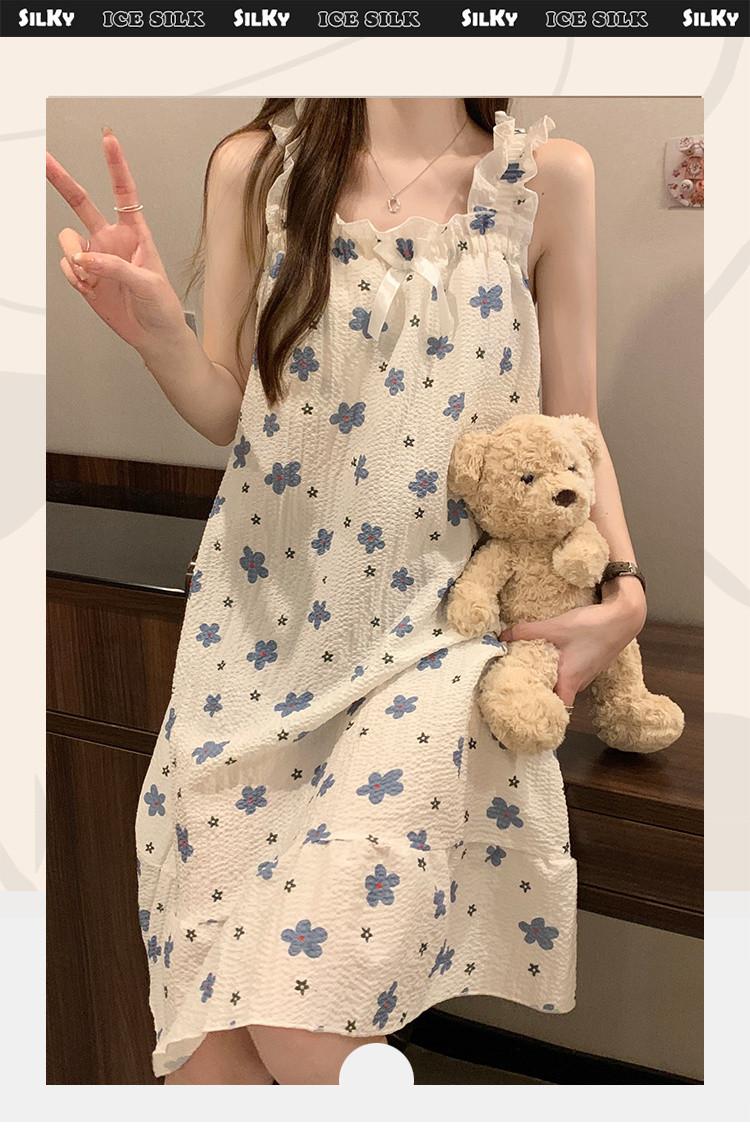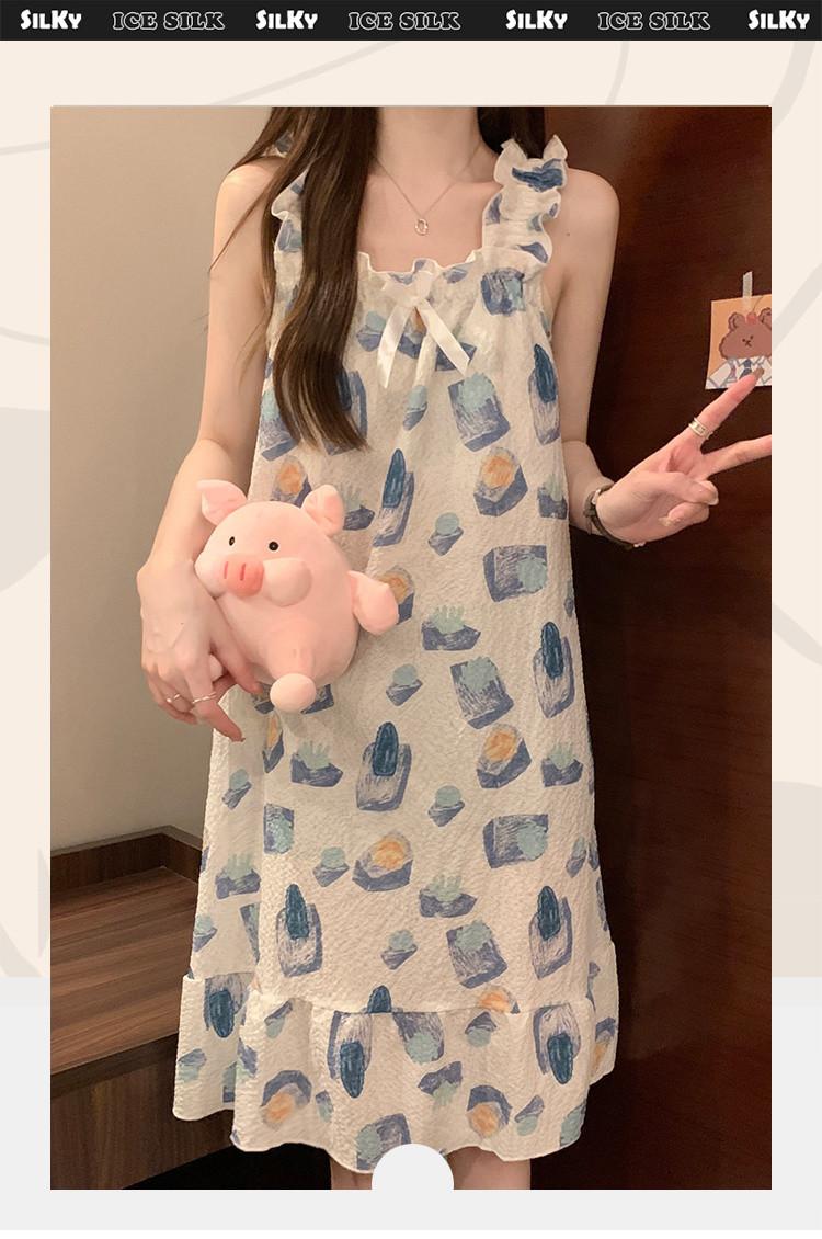 Gran Venta Pijamas Nuevos para Mujer Verano Delgados Sin Mangas Estilo Celebridad de Internet Puro Lujuria Camisón Fresco Largo Medio Ropa para el Hogar