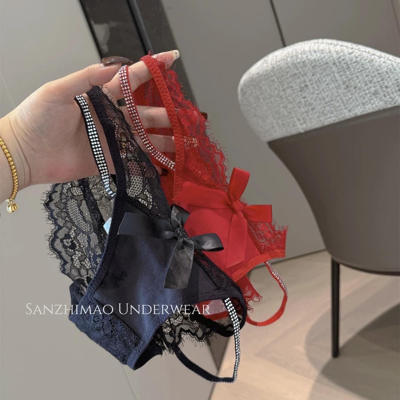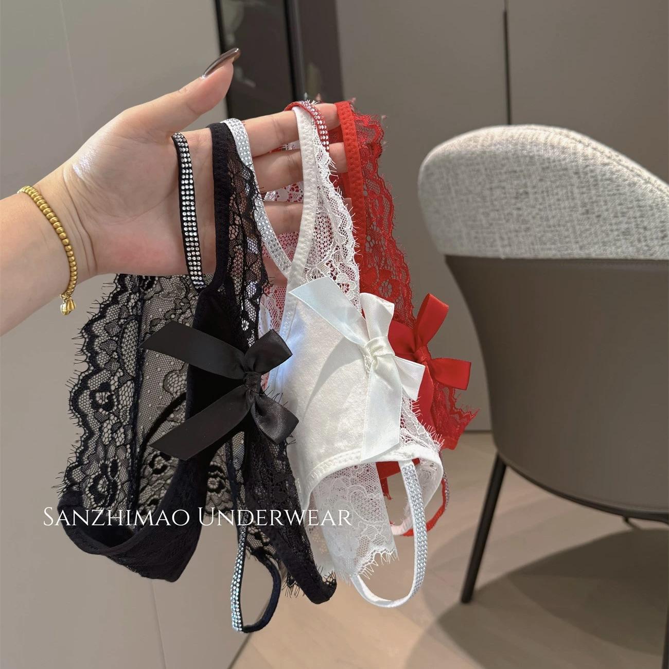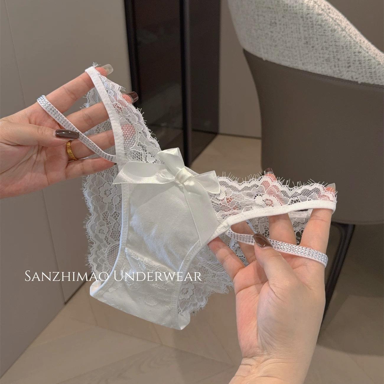 2025 Nuevo Estilo Encantador Estilo Lujuria Pura Sexy Panties de Encaje para Mujer Corte con Tirantes Cruzados Diamante Flash Calzones de Algodón de Cintura Baja