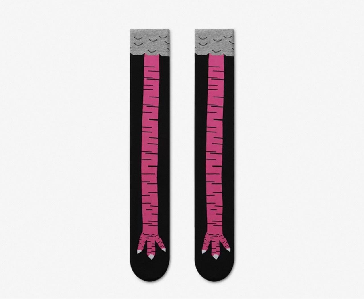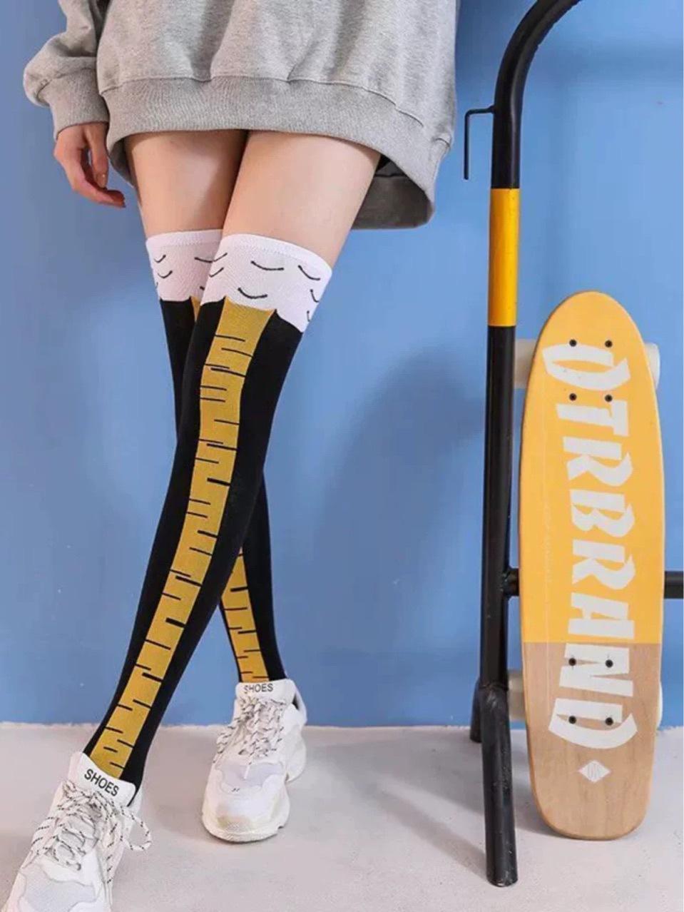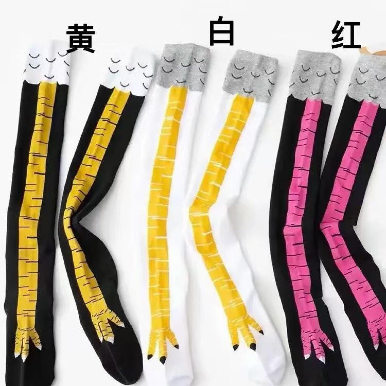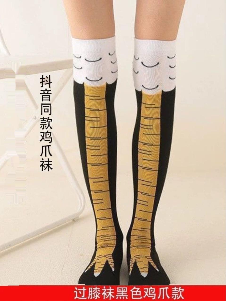 Calcetines de patas de pollo para mujer calcetines interesantes por encima de la rodilla patrón de avestruz rojo de internet hasta la rodilla pantorrilla divertidos calcetines largos de algodón de patas de pollo para otoño e invierno