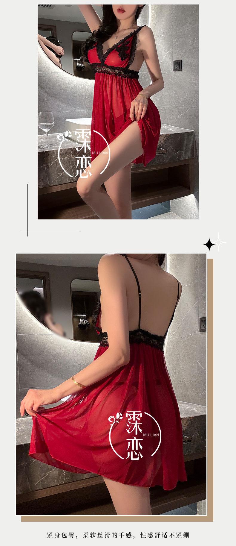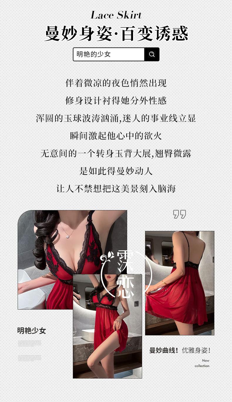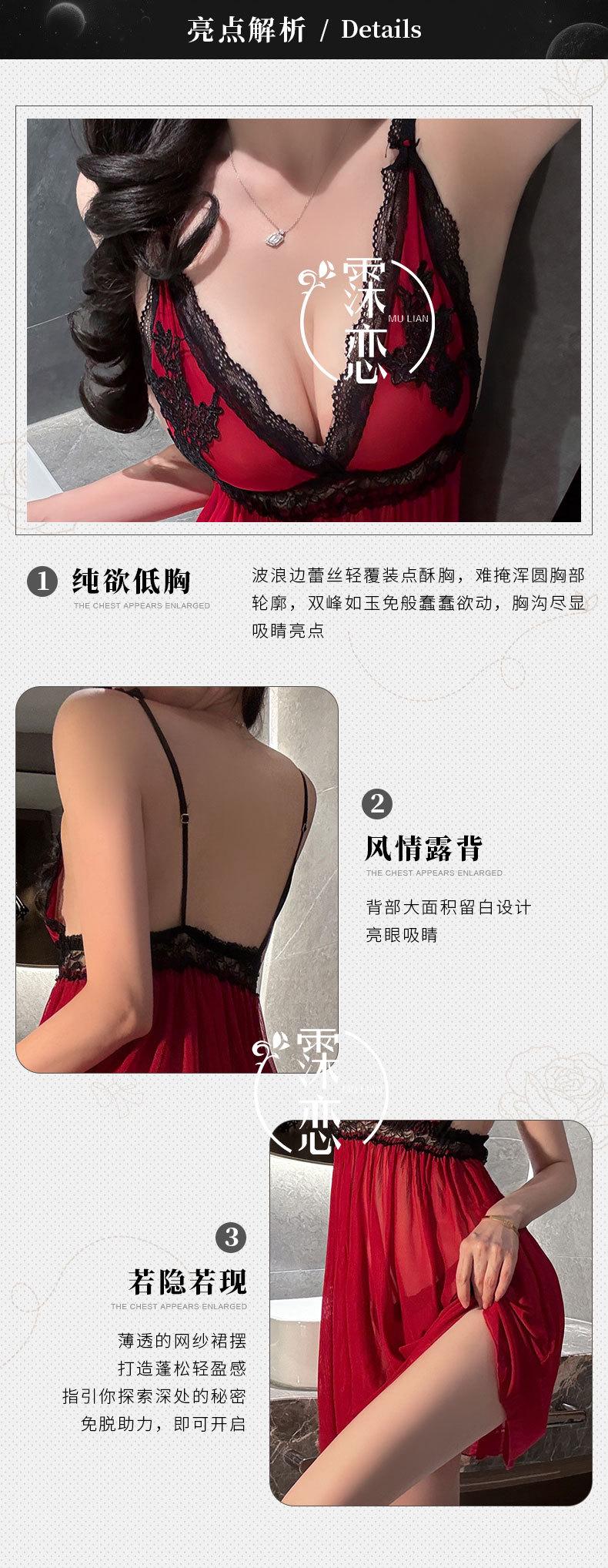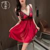 Lencería Sexy Europea y Americana Talla Grande Pechos Expuestos Camisón Sexy Cuello Halter Espalda Descubierta Encaje Pijama Sexy Ropa para el Hogar de Mujer Coqueteo