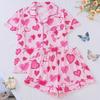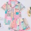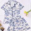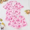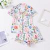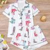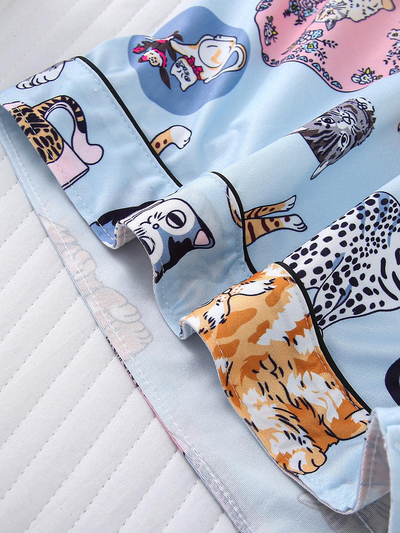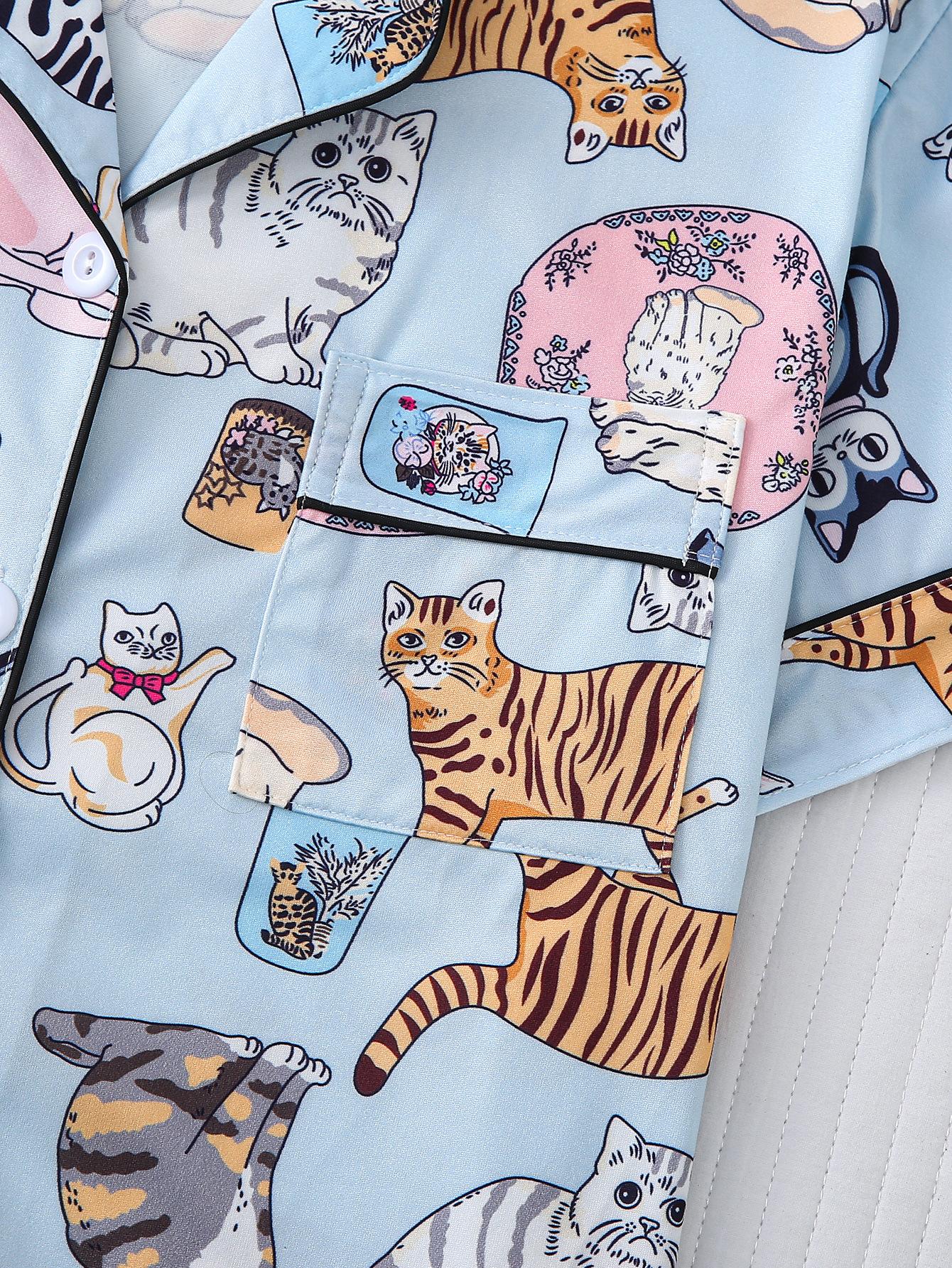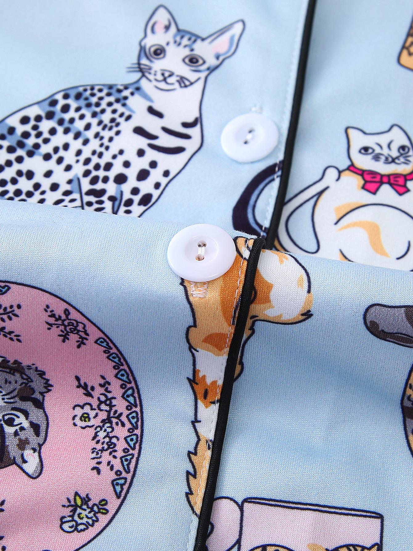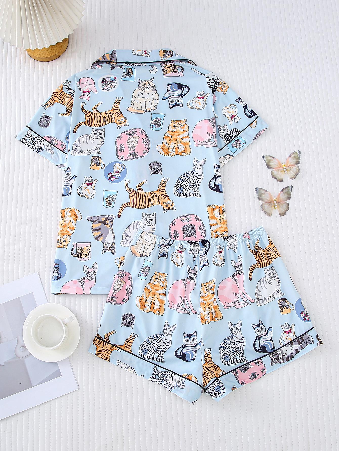 Pijama de Mujer para Exportación Transfronteriza para Todo el Año con Estampado de Gato, Solapa, Manga Corta y Shorts, Ropa para el Hogar, Pijama de Mujer