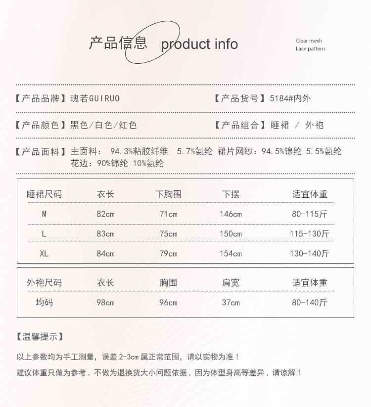 Black (nightgown), Black (robe), White (nightgown), White (robe), Red (nightgown), Red (robe)