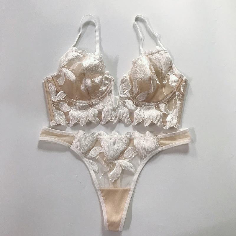 Set de Brasier Largo de Encaje Bordado con Calcomanía