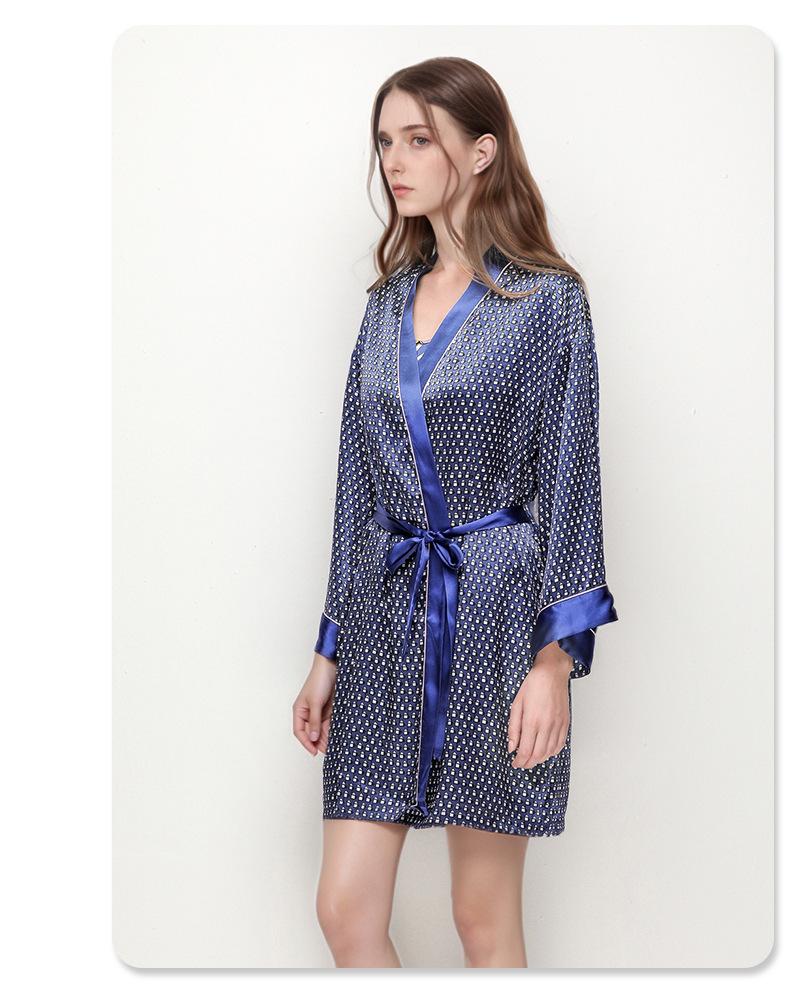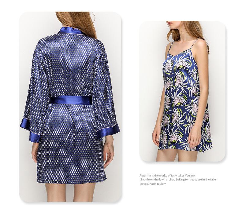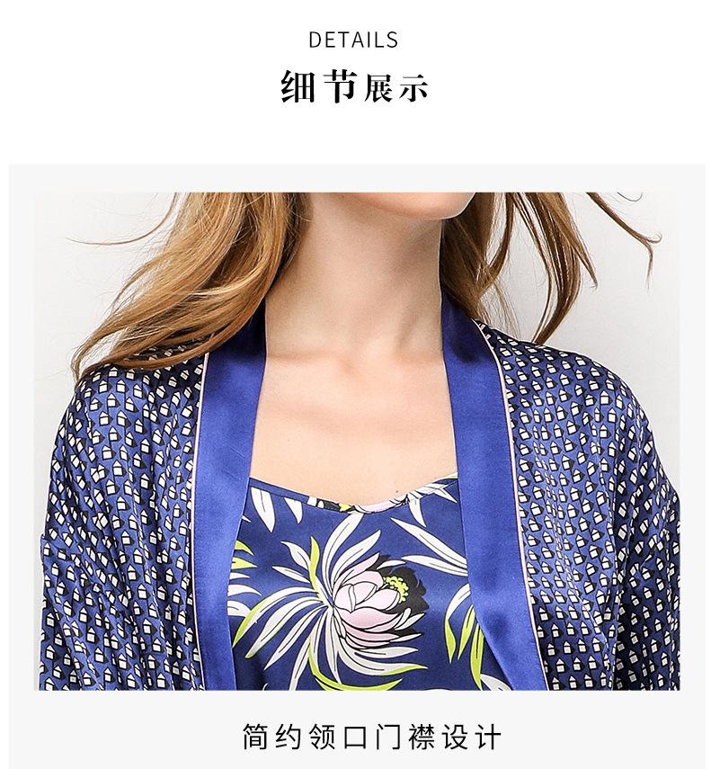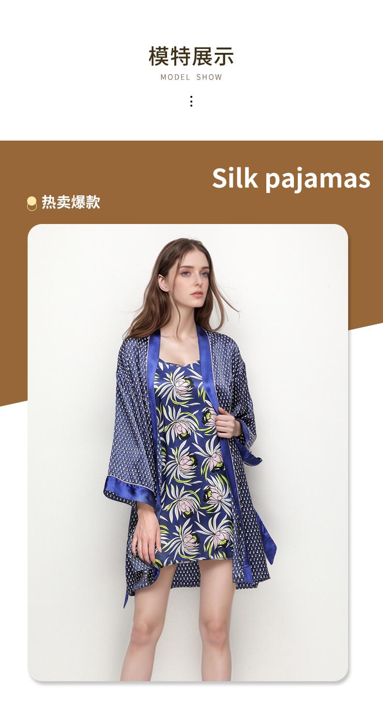 Verano Nuevo Bata de Seda de Peso Pesado para Mujer 100% Seda de Morera Camisón con Tirantes Camisón Conjunto de Dos Piezas Ropa para el Hogar