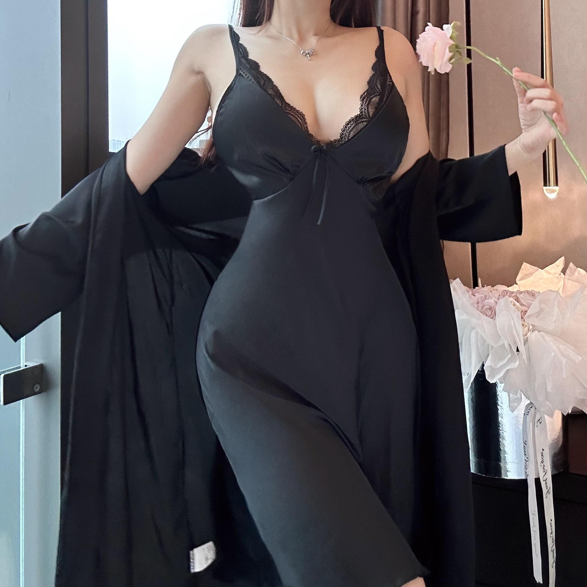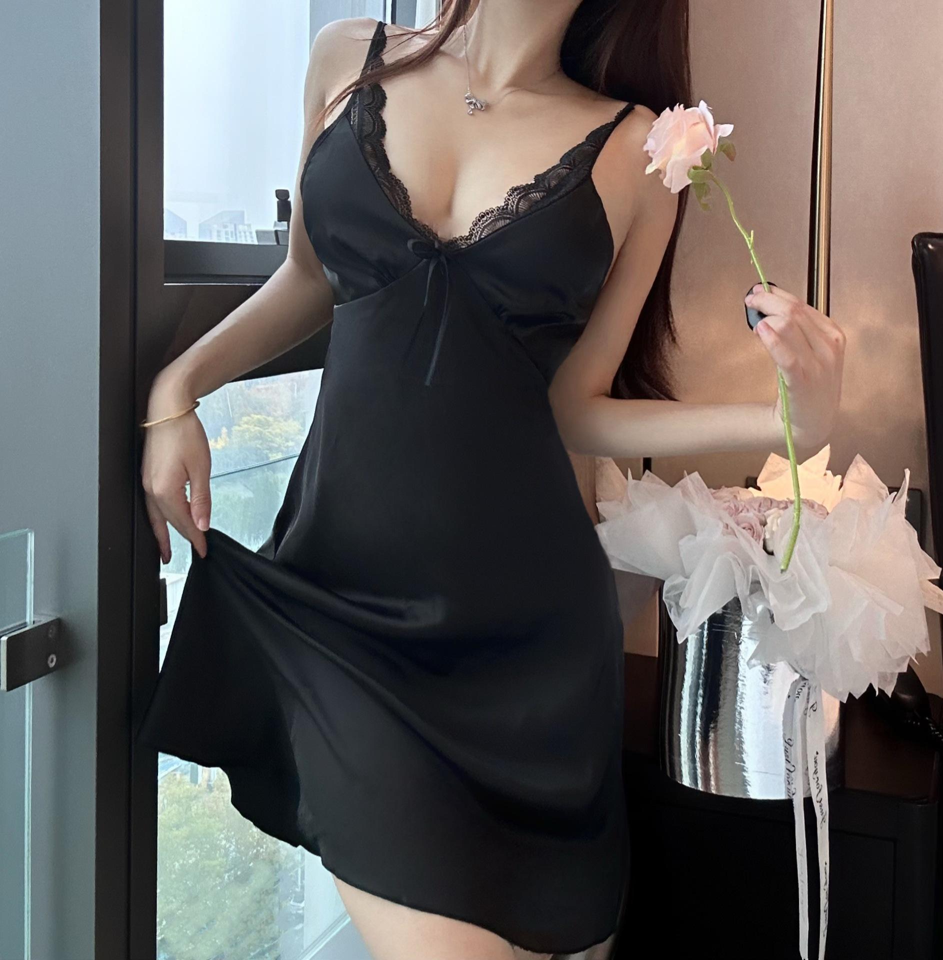 4344 white [ice silk suspender nightgown], 4344 black [ice silk suspender nightgown]