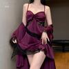 Pijama Sexy Nube Rosa para Mujer: Deseo Caliente y Puro Camisón Privado de Encaje de Seda de Hielo de Verano de Alta Gama para Parejas, Lencería Divertida