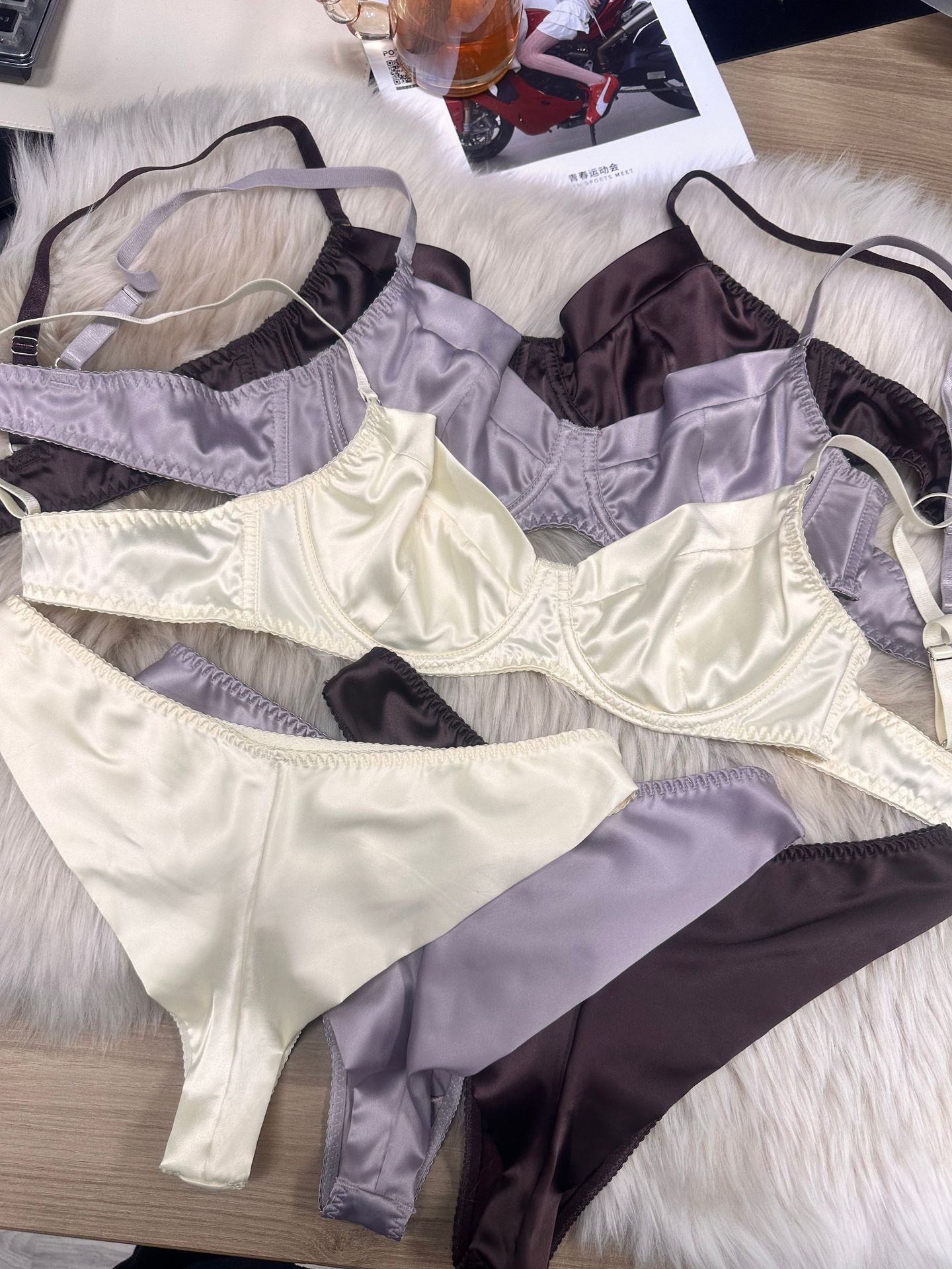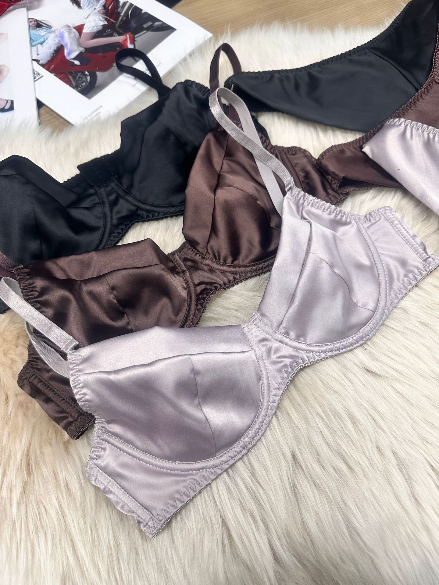 Lencería Sexy para Mujer, Delgada, Brillante, Personalizada, de Alta Gama, Sin Costuras, para Busto Grande, Pequeño Push-Up, Conjunto de Brasier Francés de Talla Grande