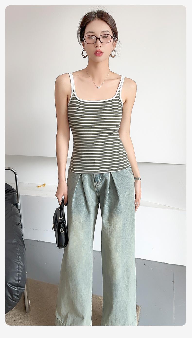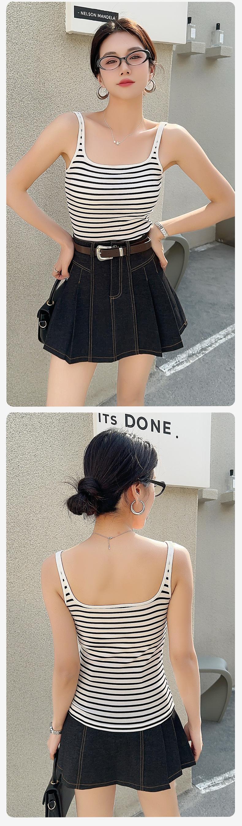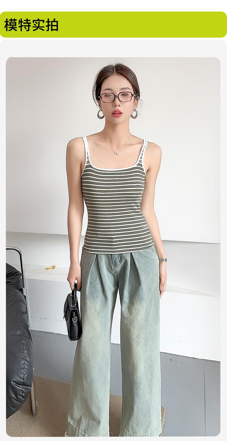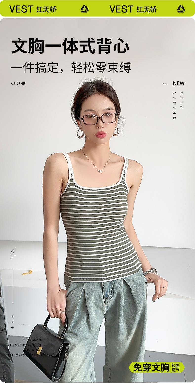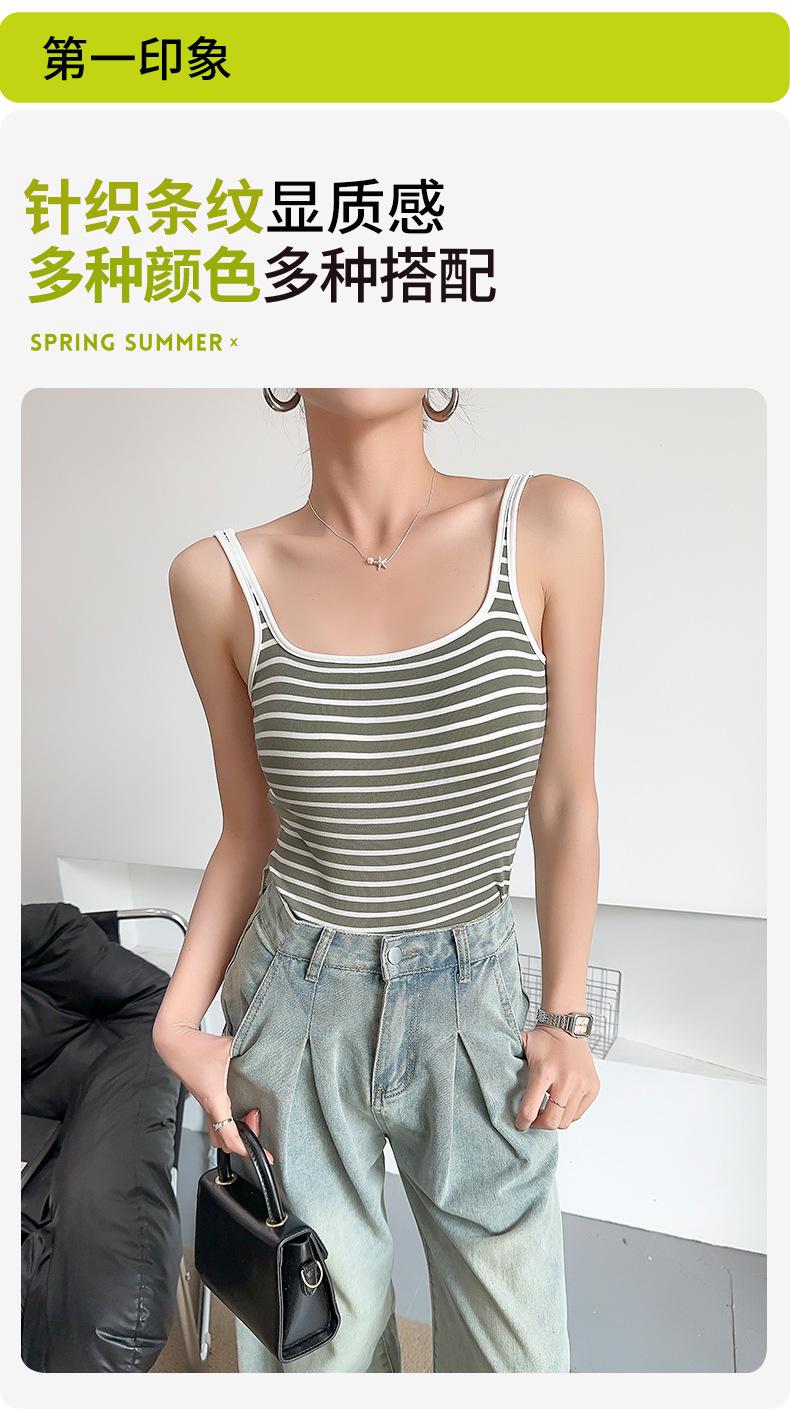 Nuevo chaleco de cuello cuadrado camisola coreana a rayas lyocell suave amigable con la piel sin usar chaleco sujetador al por mayor