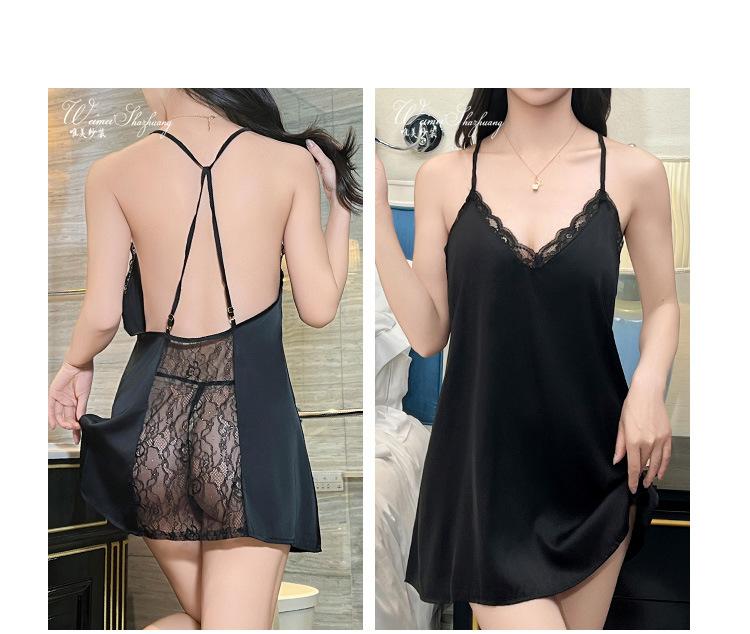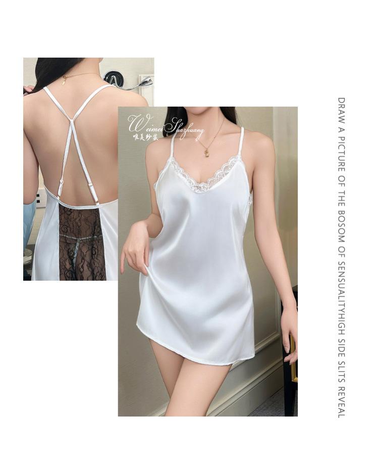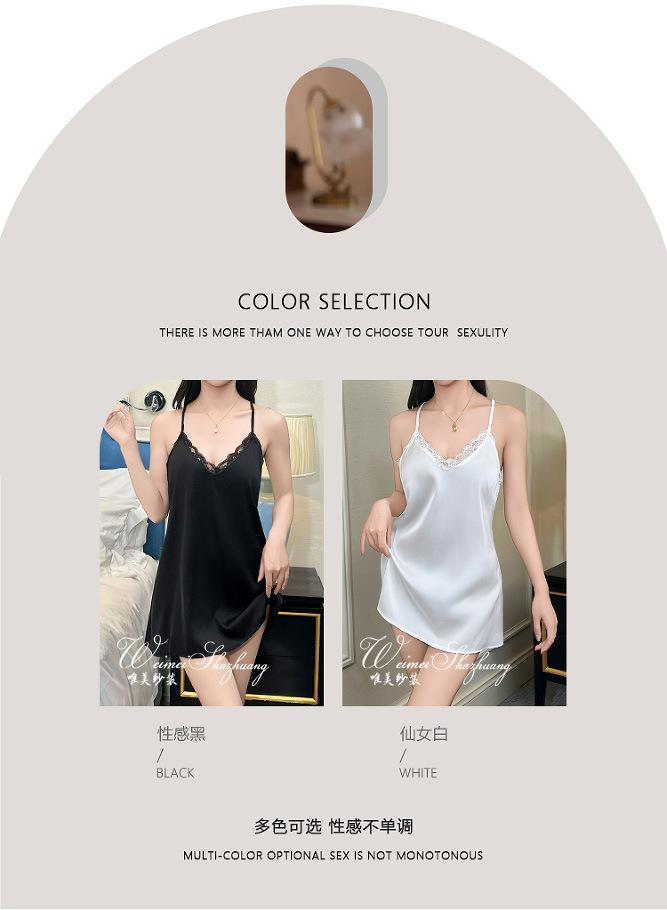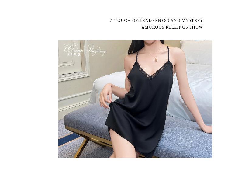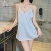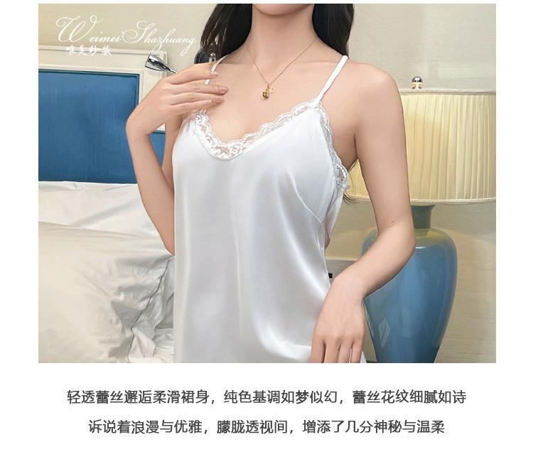 Hermoso Camisón Sexy de Gasa con Tirantes y Escote en V Profundo para Mujer Estilo Lujuria Pura Pijama con Tirantes Verano Fino Camisón Casero de Seda de Hielo