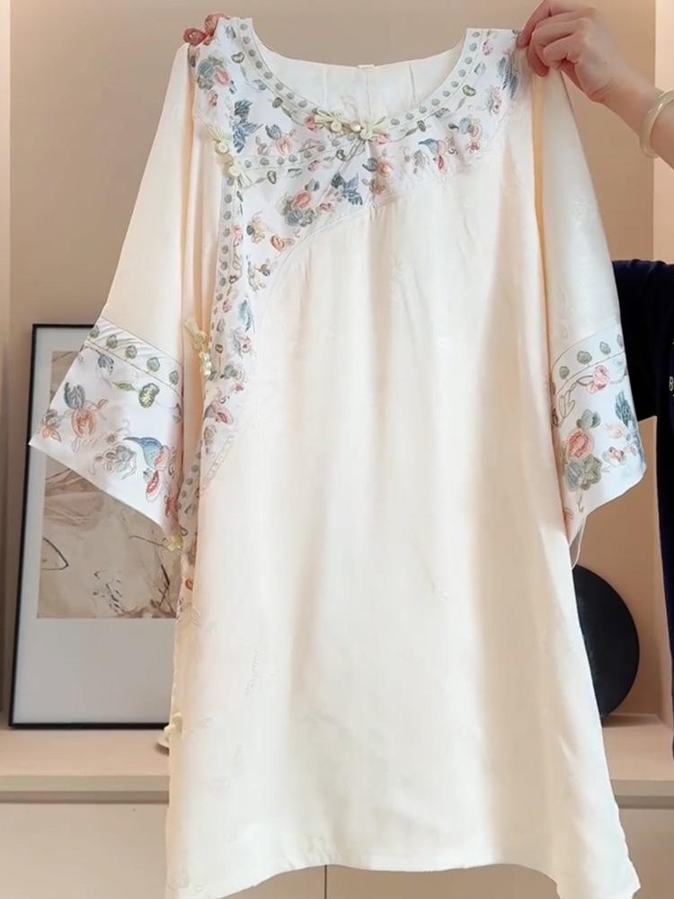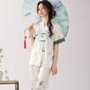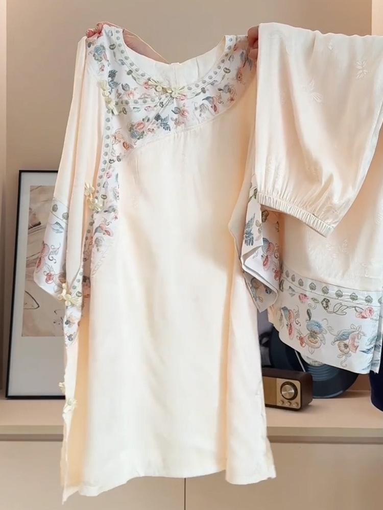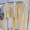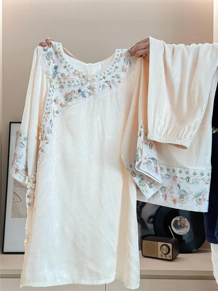 Pijama Antiguo Retro Chino de Encaje Suelto de Manga Corta para Mujer Verano Delgado Satén de Alta Gama Conjunto para Estar en Casa