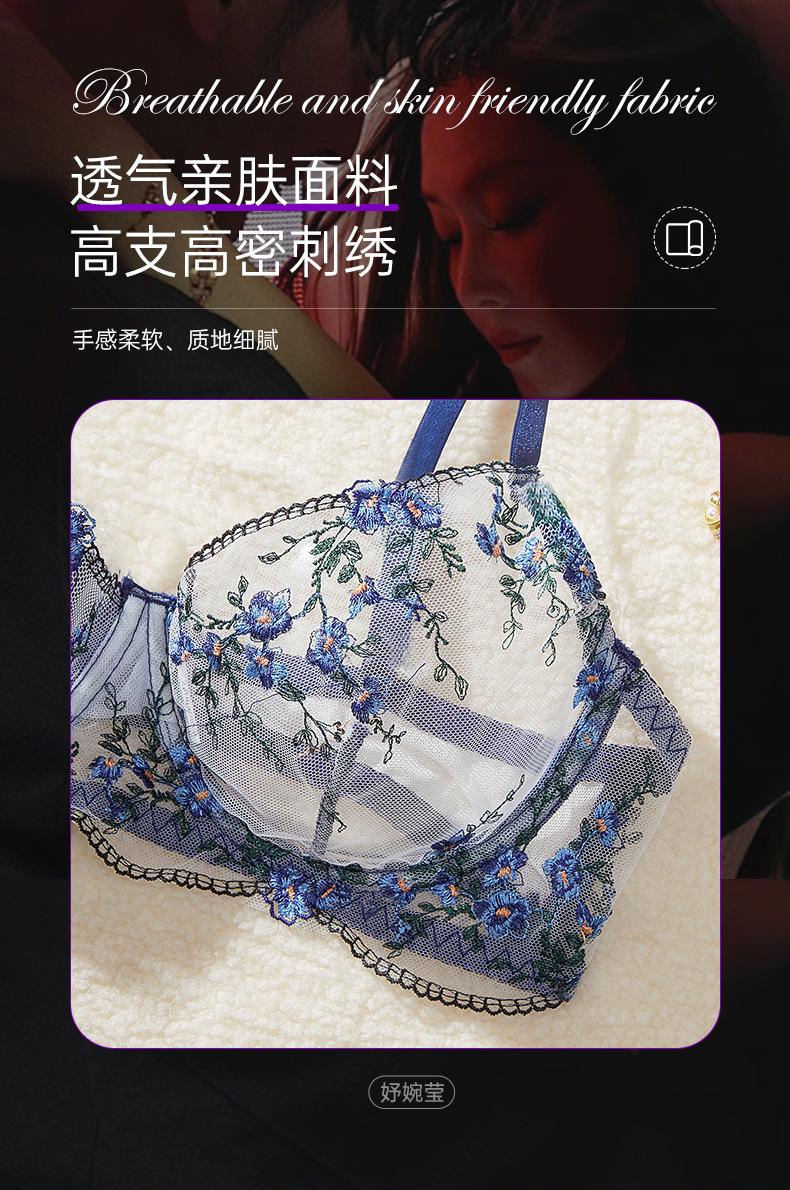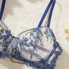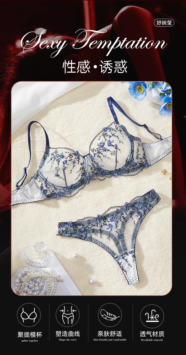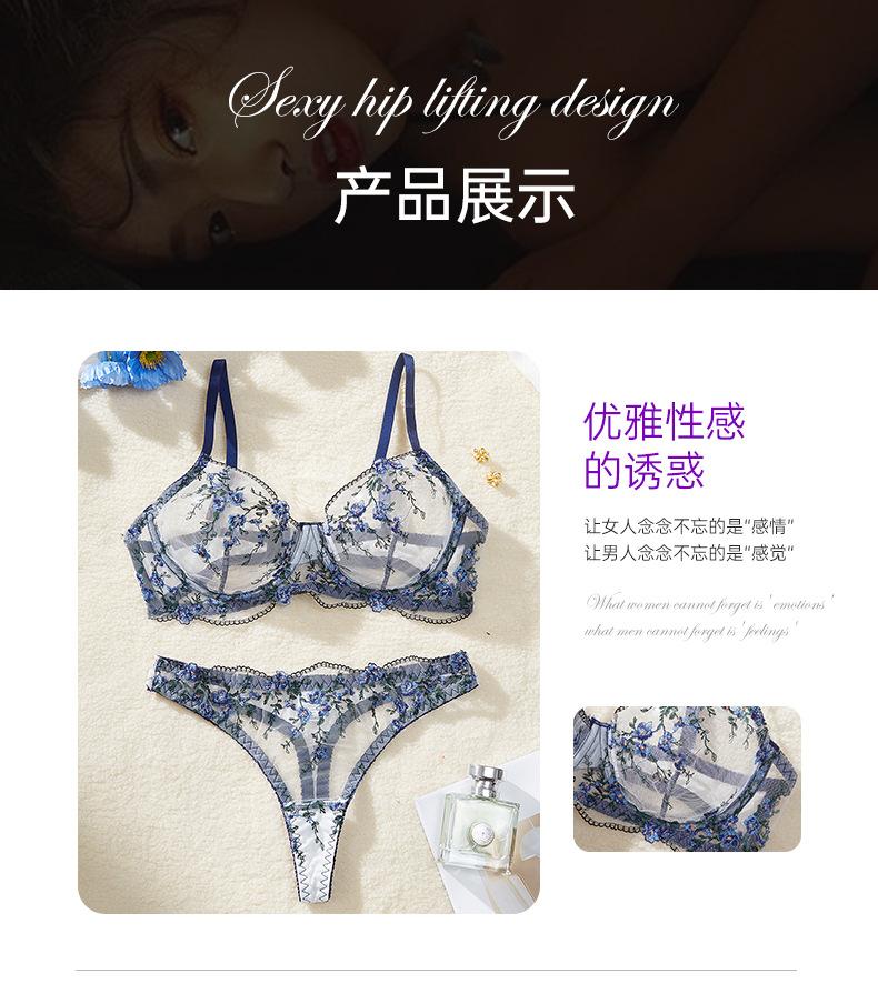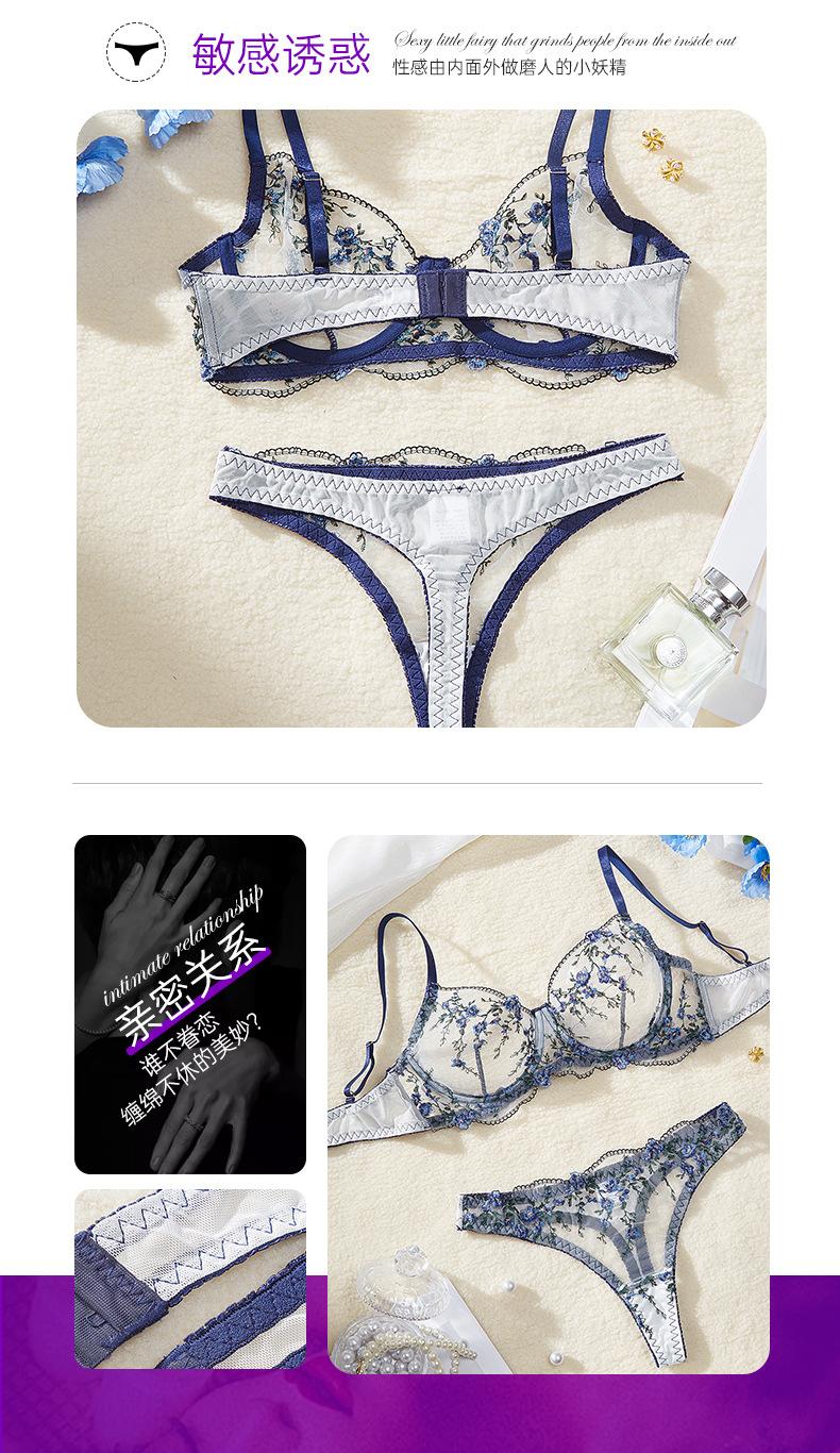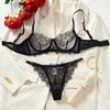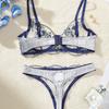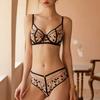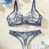 Conjunto de 2 piezas de lencería sexy transfronteriza europea y americana con bordado de flores y malla transparente
