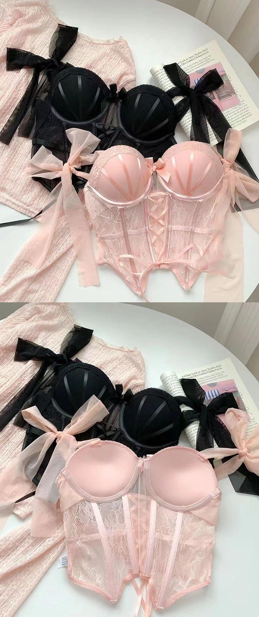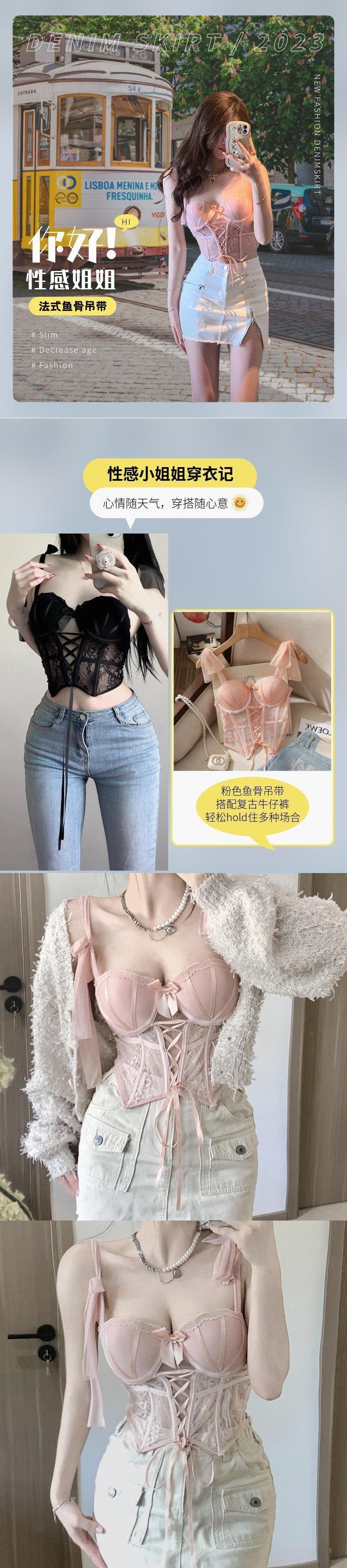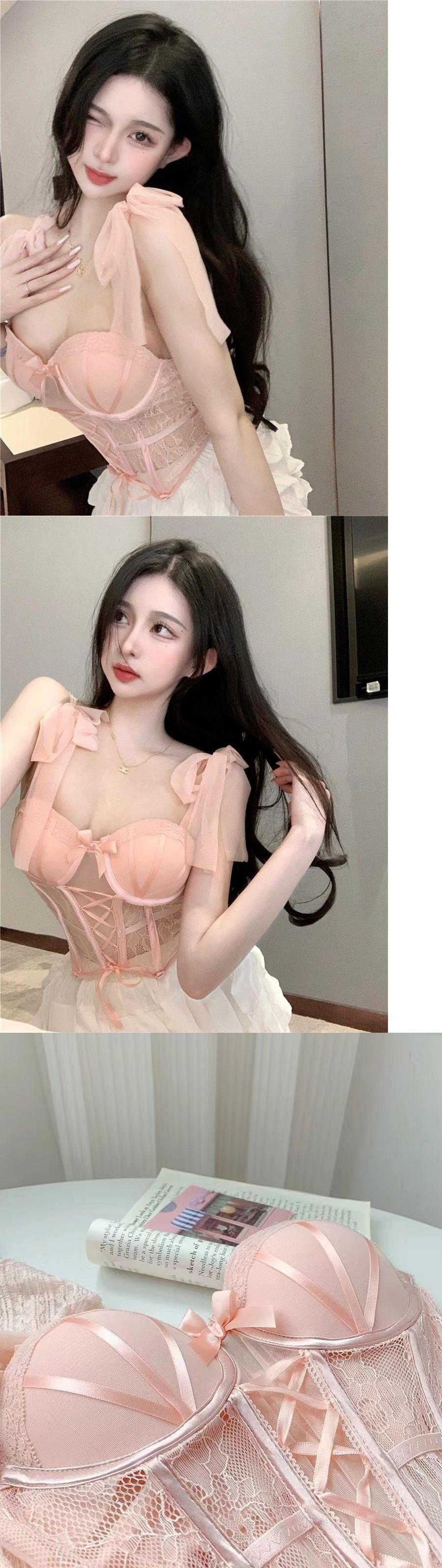 Dulce y Sexy Nuevo Corsé de Espina de Pescado Chica Caliente Encaje Ropa Interior Tirantes Chaleco Adelgazante Cintura Top de Mujer Espalda Hermosa Rosa