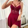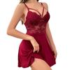 Nuevo Amazon de Venta Caliente Transfronterizo Hebilla de Diamante de Amor Encaje Empalmado Falda de Tirantes Escotada Deseo Puro Camisón Sexy sin Espalda