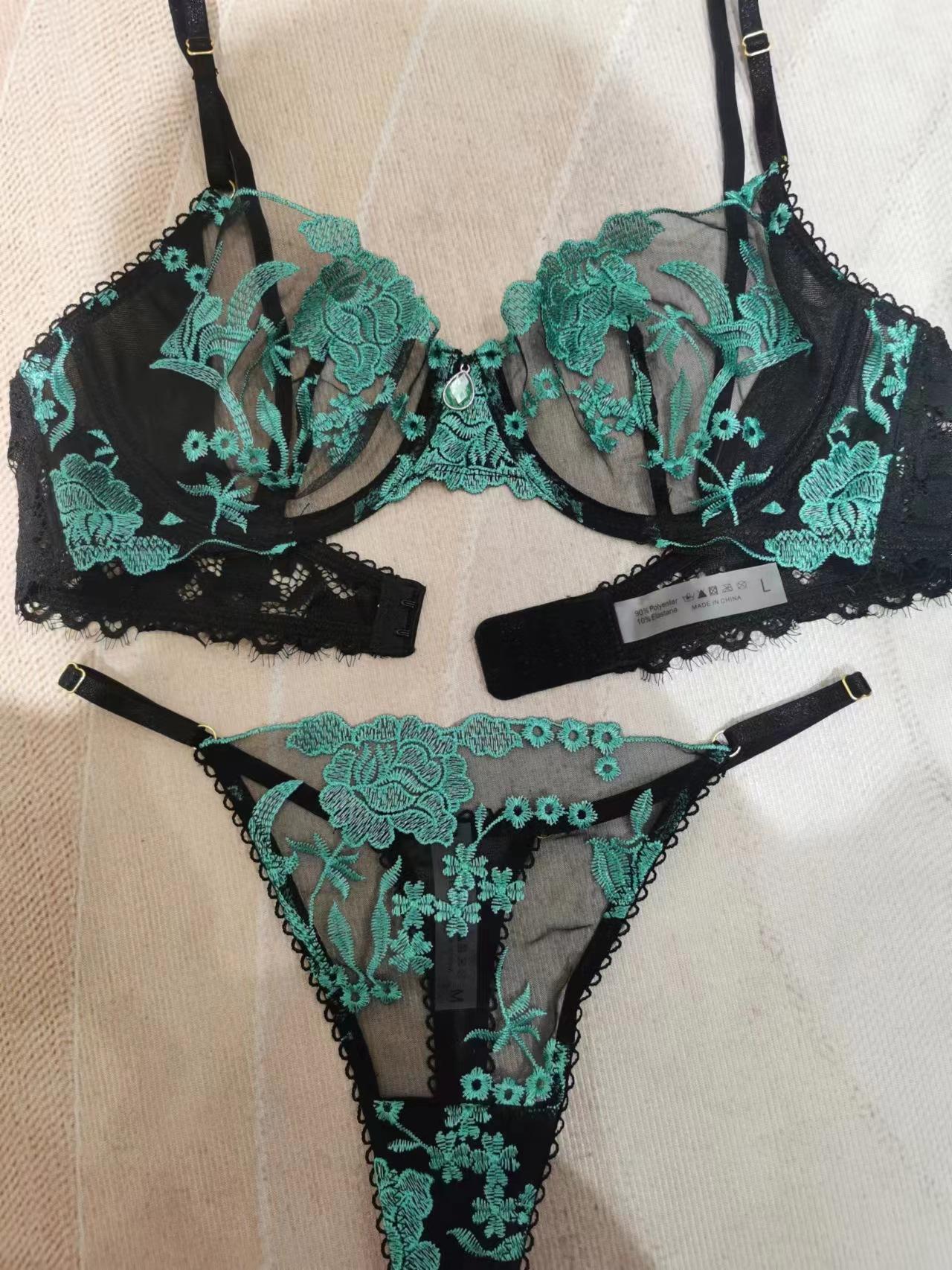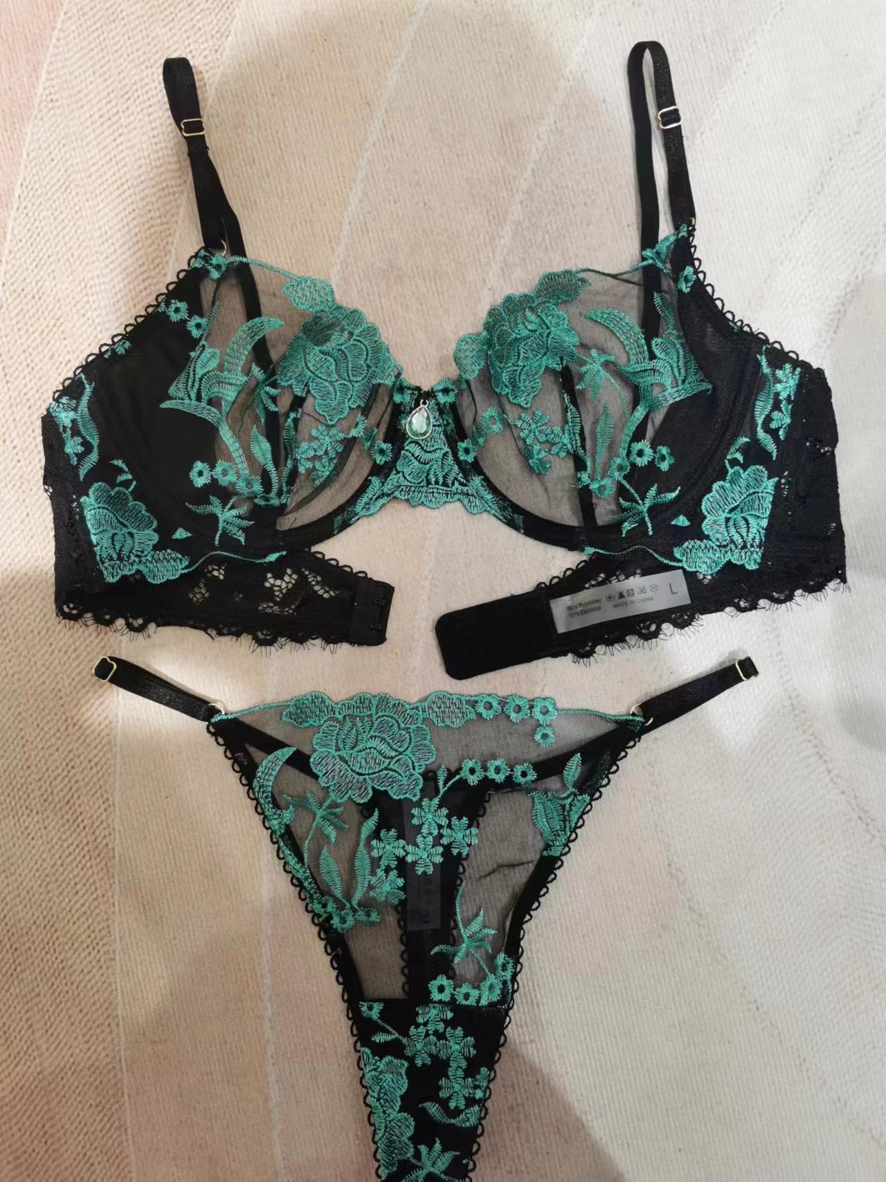 Lencería Francesa Europea y Americana para Mujer Sexy Bordada Ultradelgada Transparente Tentación Aro de Acero Conjunto de Brasier Sexy Estilo Europeo y Americano