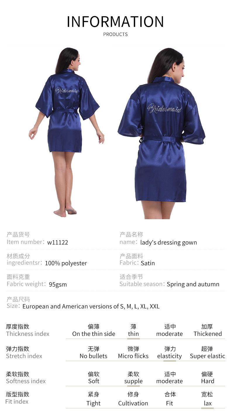 Camisón para Mujer Primavera, Verano y Otoño Pijama Bata de Dama de Honor Satén Suelto Talla Grande Delgado Diamante Caliente Color Puro Boda Bata de Baño Camisón