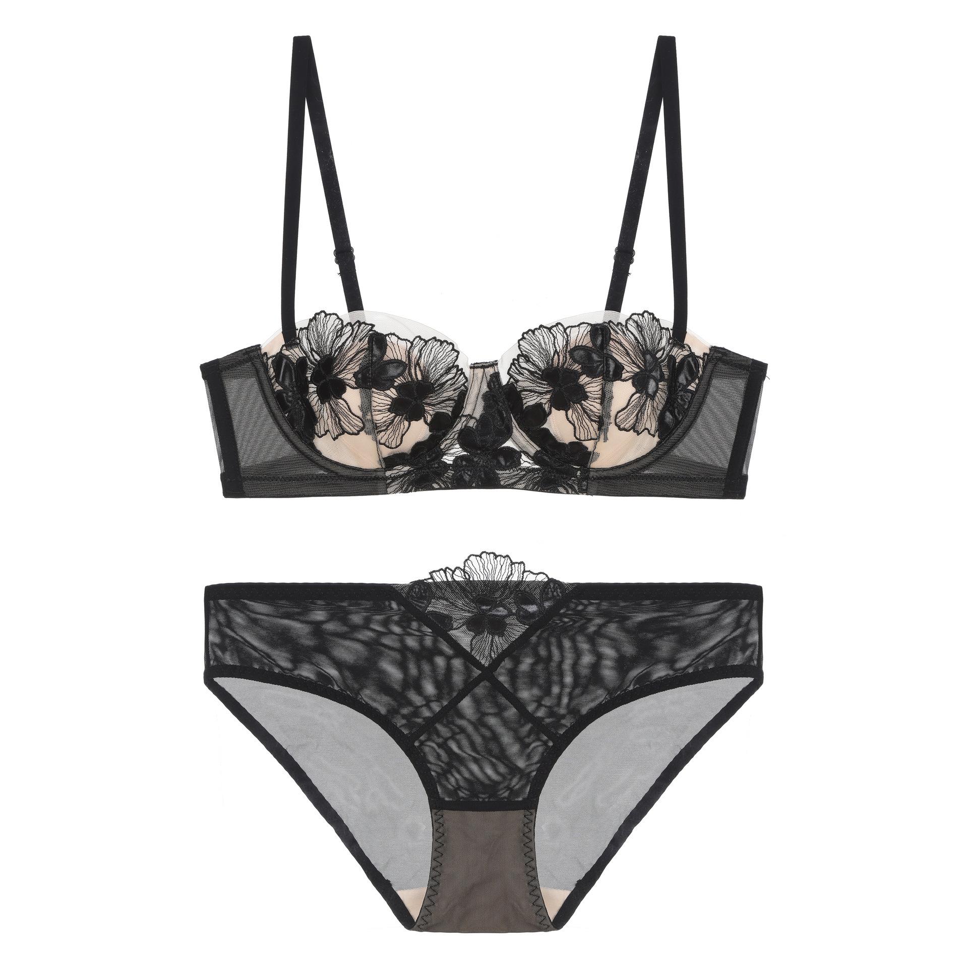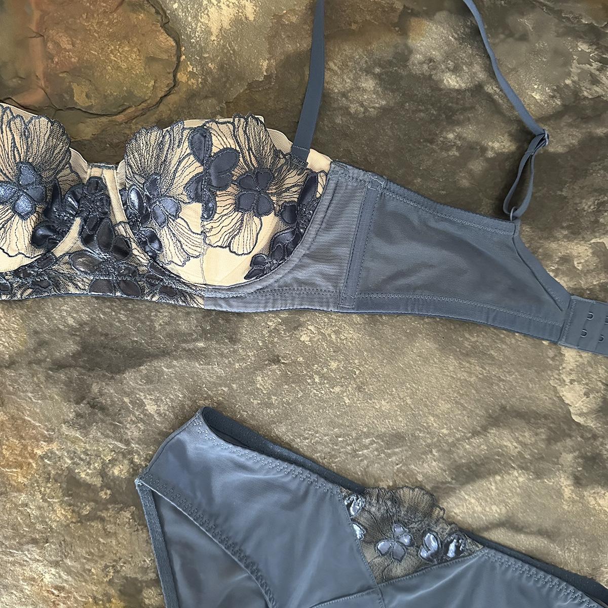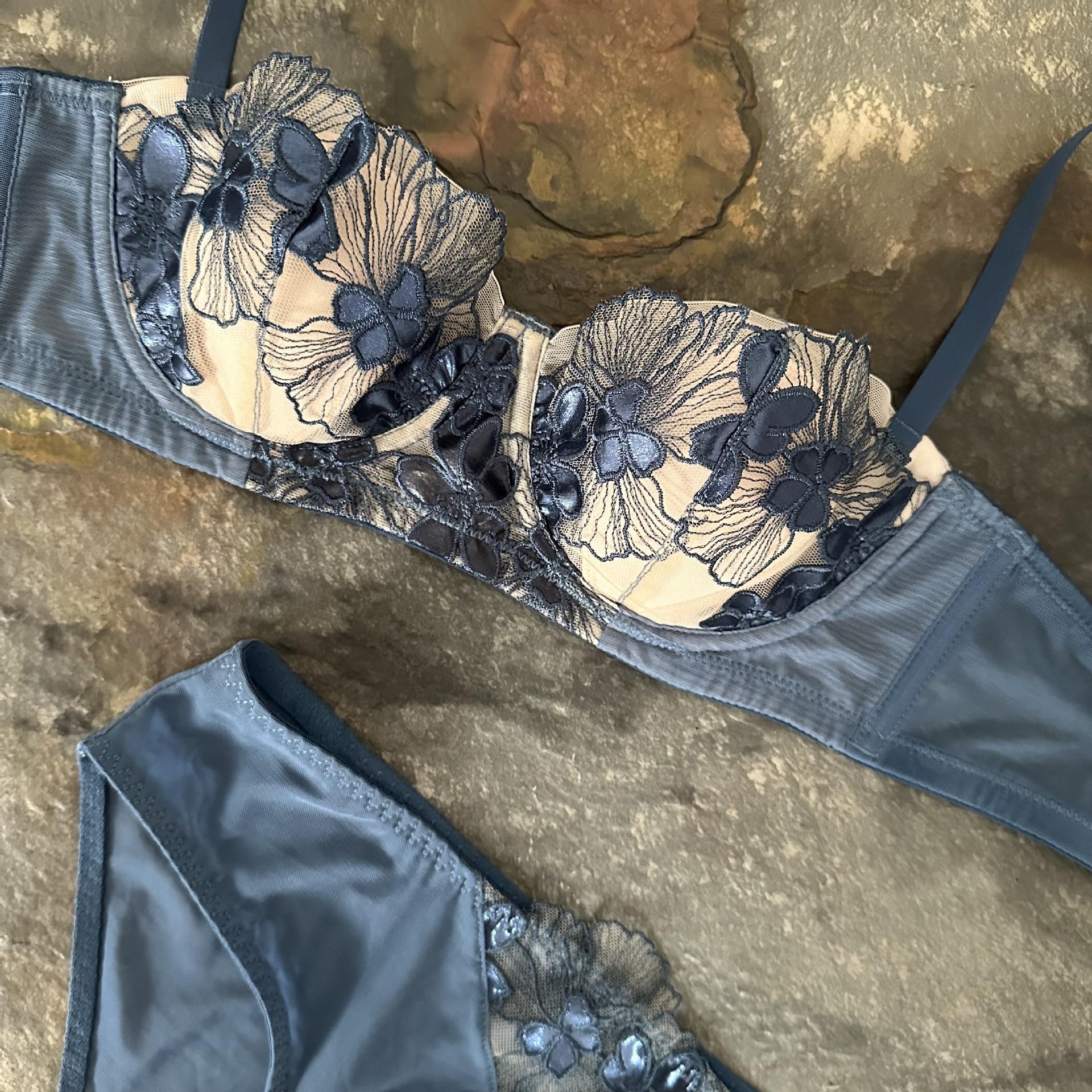 2024 Europeo y Americano Bordado Orejas de Conejo Antigolpes Pecho Grande Pequeño Delgado Sujetador Ropa Interior Francesa Traje de Sujetador Sexy
