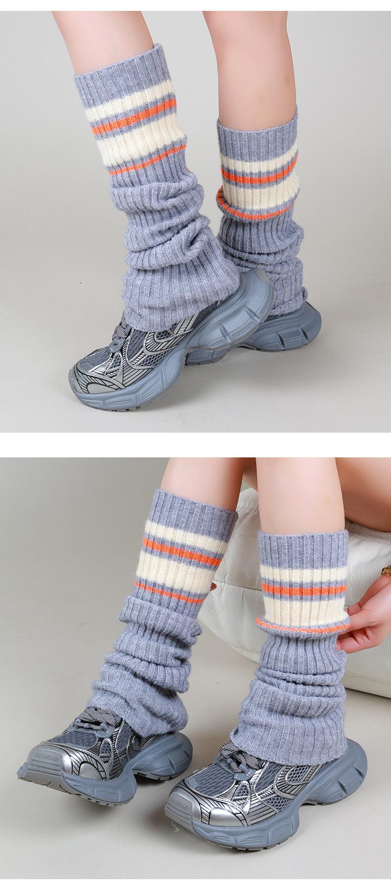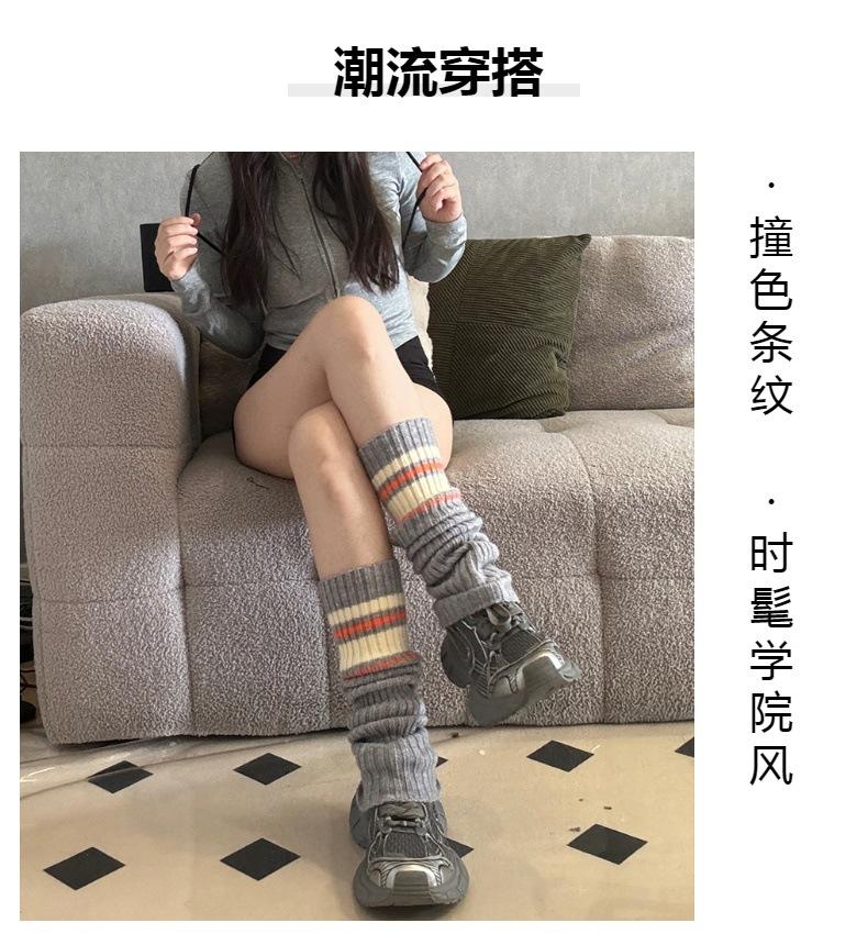 Calcetines hasta la pantorrilla estilo universitario con rayas contrastantes, subcultura Y2K, dulces, geniales, sexys, versátiles, moldeadores, tipo calcetines de felpa