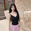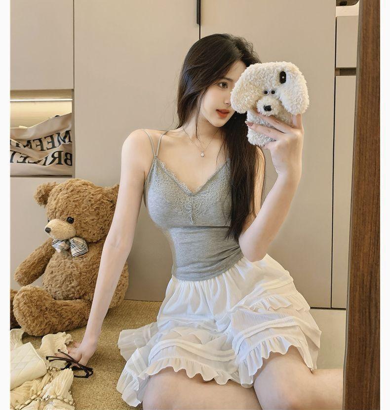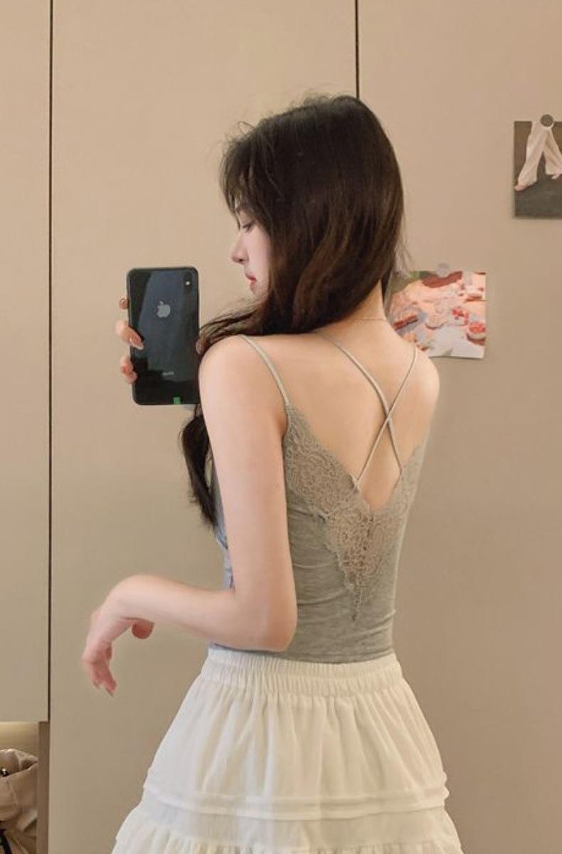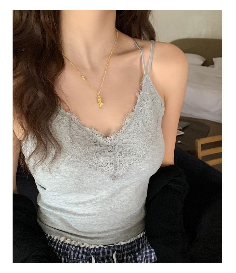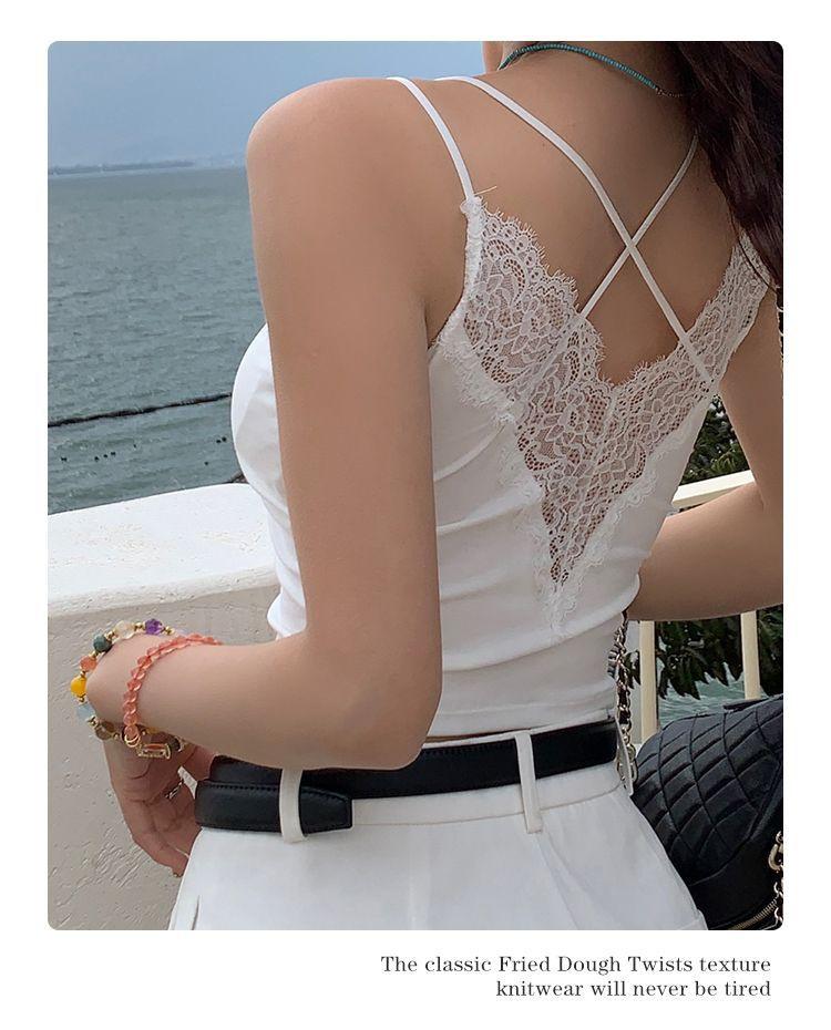 Camisola Sexy con Cuello en V y Encaje Patchwork con Almohadillas en el Pecho, Top Exterior de Ajuste Ceñido para Mujer