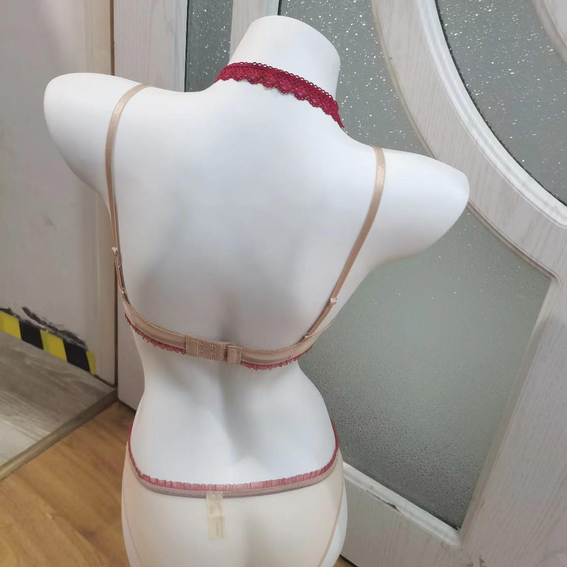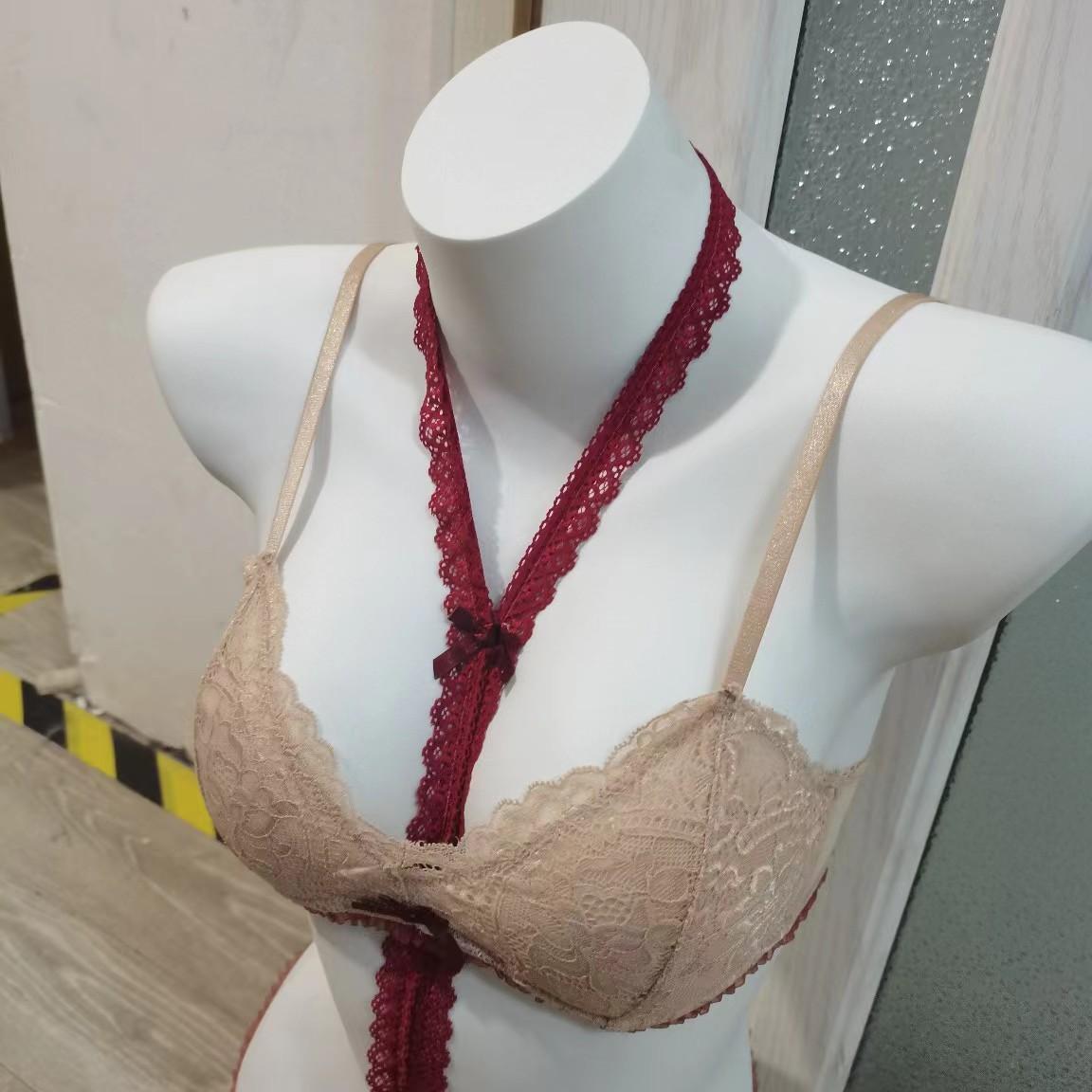Traje de Ropa Interior Sexy de Encaje Francés Lindo Lazo Tira al Cuello Copa Triángulo Almohadilla de Algodón