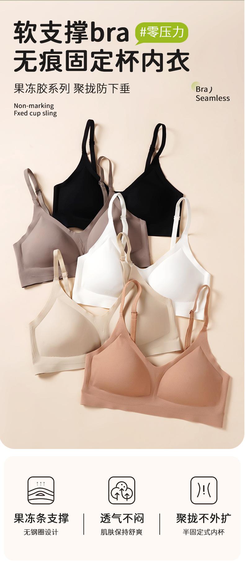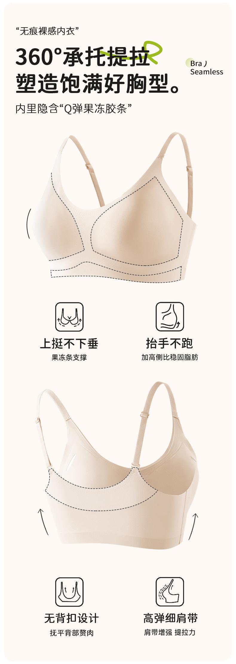 Ropa interior sin costuras de seda de hielo tipo jalea para mujer con senos grandes que muestra senos pequeños push-up de verano delgada copa semifija sujetador de espalda hermosa ultradelgado