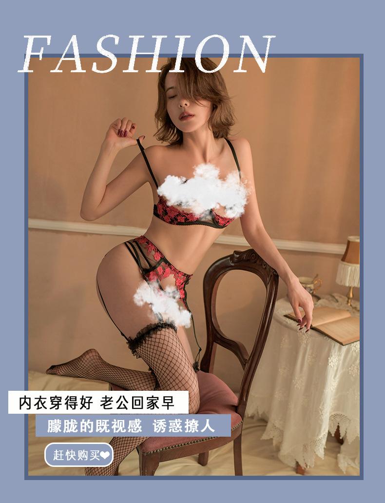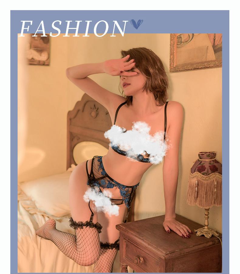 Red (bra + panties + garter), Blue (bra + panties + garter belt)