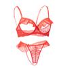 Lencería Sexy Bordada de Tres Puntos con Aros Entrepierna Abierta No Quitar de Dos Piezas Verano Sujetador Push-Up con Encaje Expuesto Set 1511