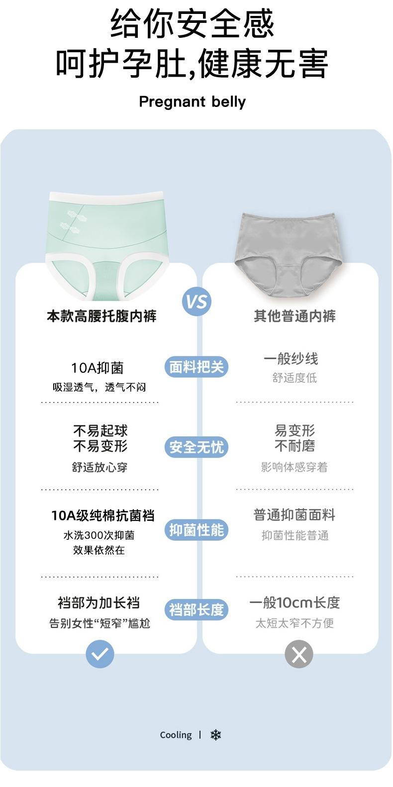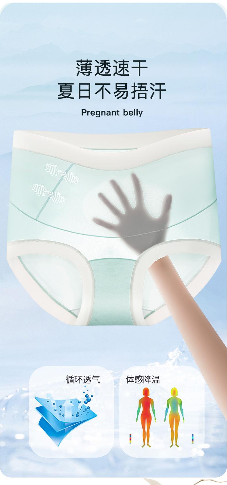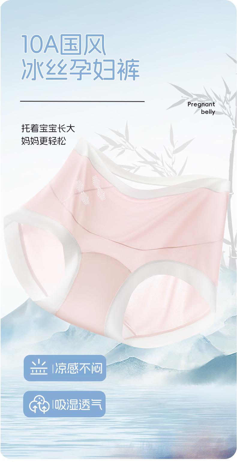 Verano Hielo Seda Transpirable Sin Costuras Clase A Estilo Nacional 10A Extendido Antibacteriano Algodón Puro Fondo Entrepierna Embarazo Cintura Alta Ropa Interior Maternidad
