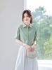 Camisa Verde de Verano de Manga Corta para Mujer Camisa Drapeada Verano Nuevo Estilo Profesional Casual Moda Slim Temperamento Viajes Tendencia