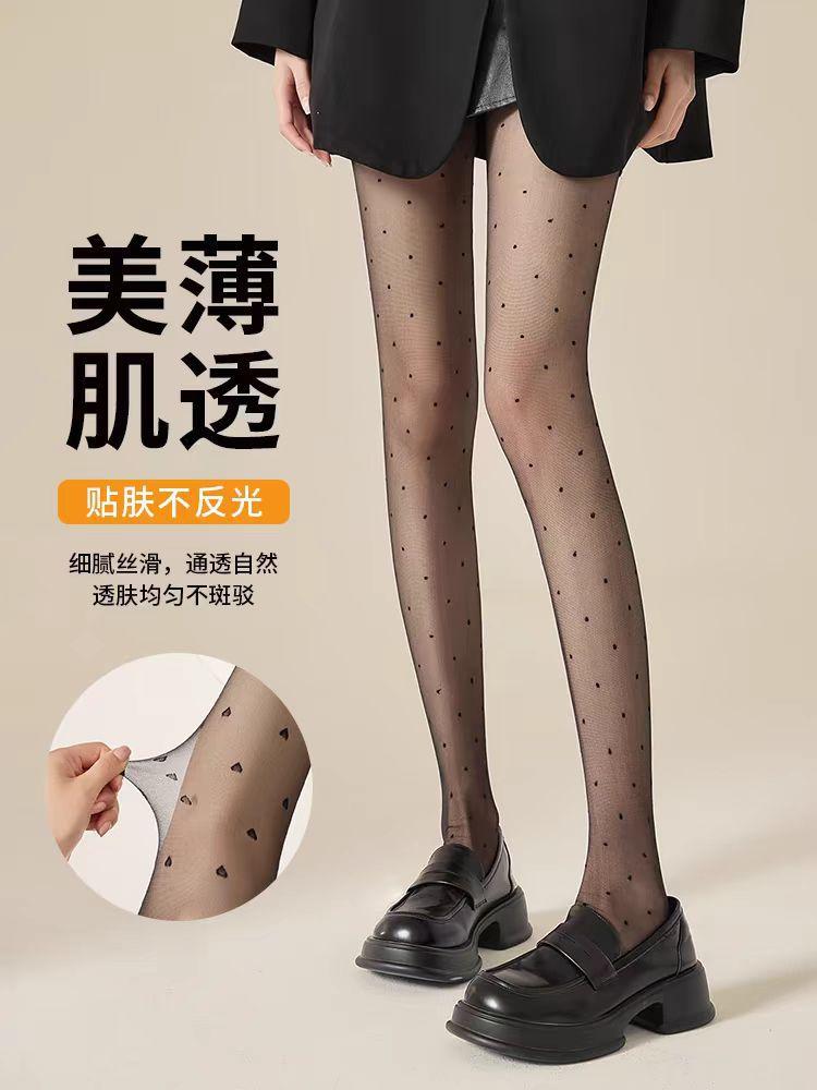 Medias de lunares para mujer, calientes, negras, 0D, sexys, pantimedias ultradelgadas, entrepierna de mariposa amor, medias blancas jk de verano
