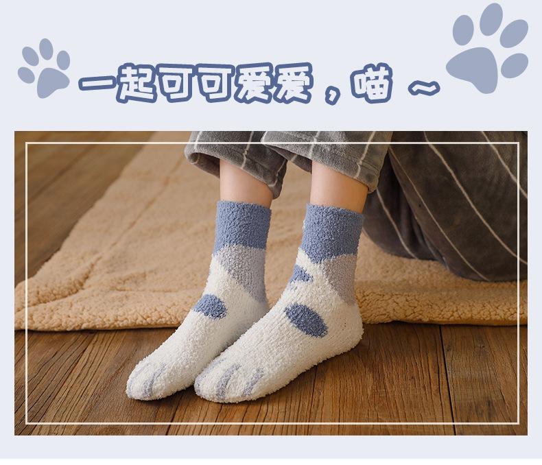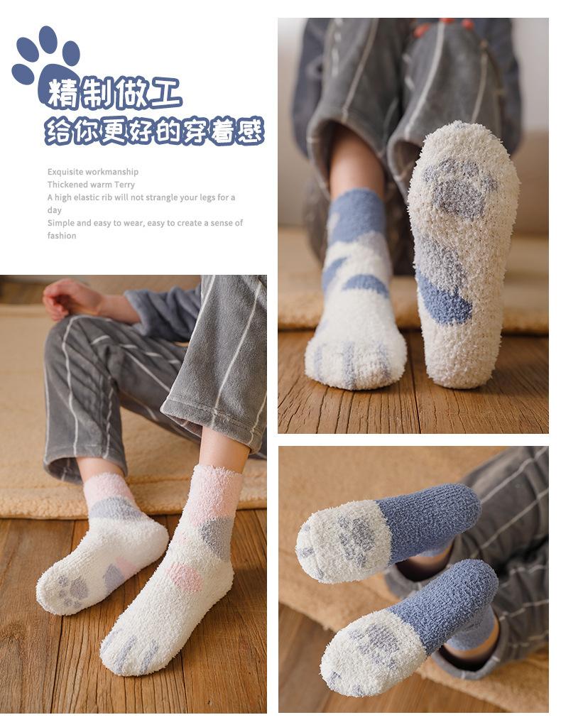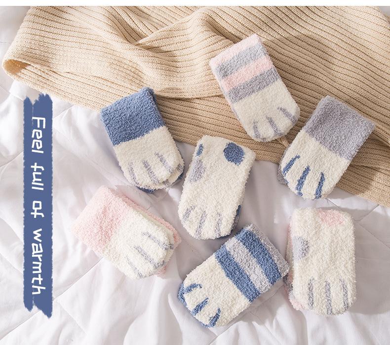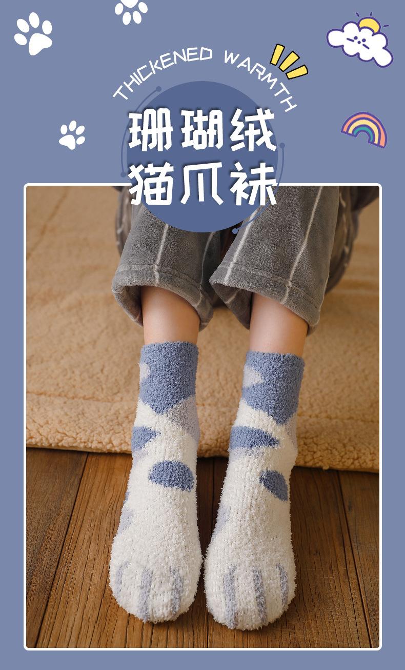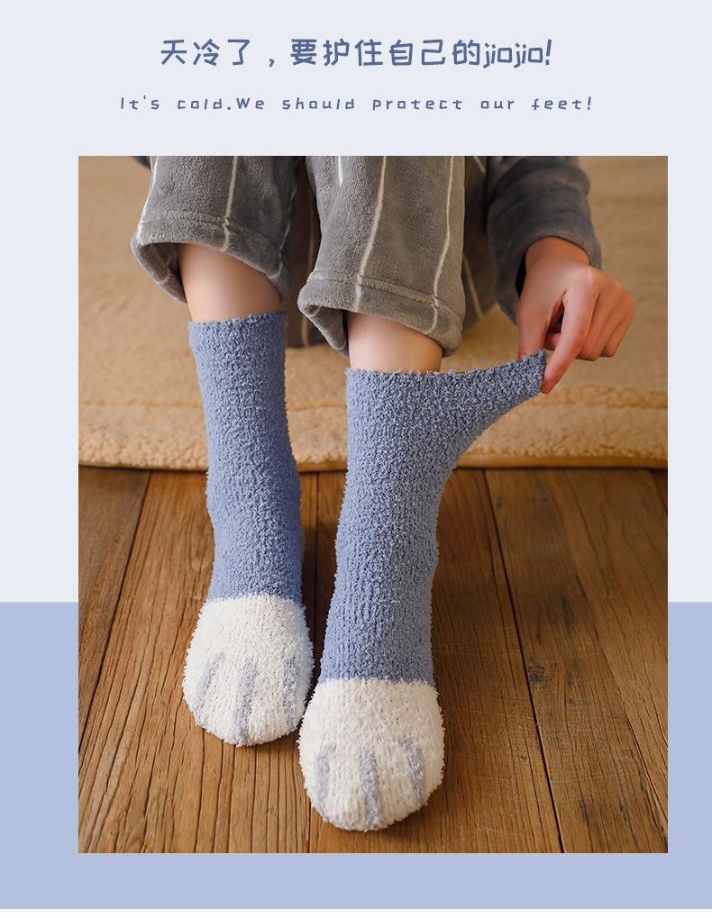 Calcetines de Vellón Coral con Garra de Gato para Mujer, Calcetines Gruesos y Cálidos con Forro de Vellón de Nuevo Estilo para Dormir, Calcetines de Piso Felpa Casual para Casa de Mujer