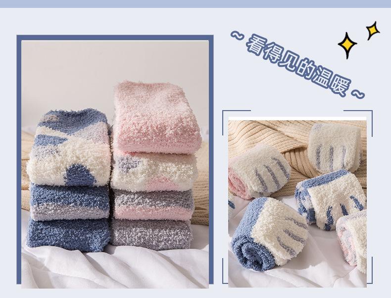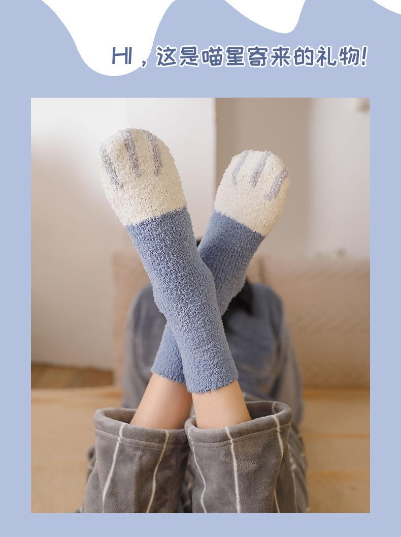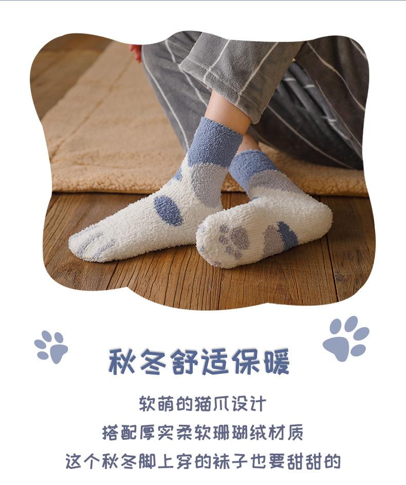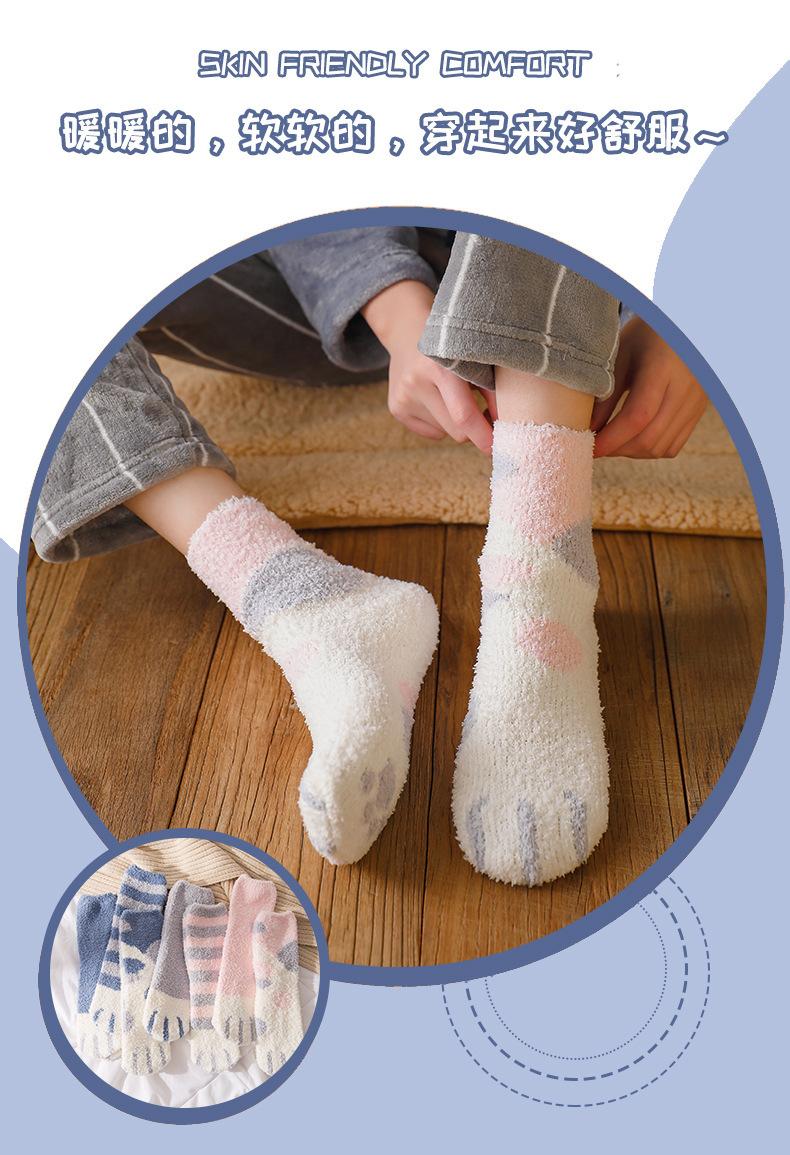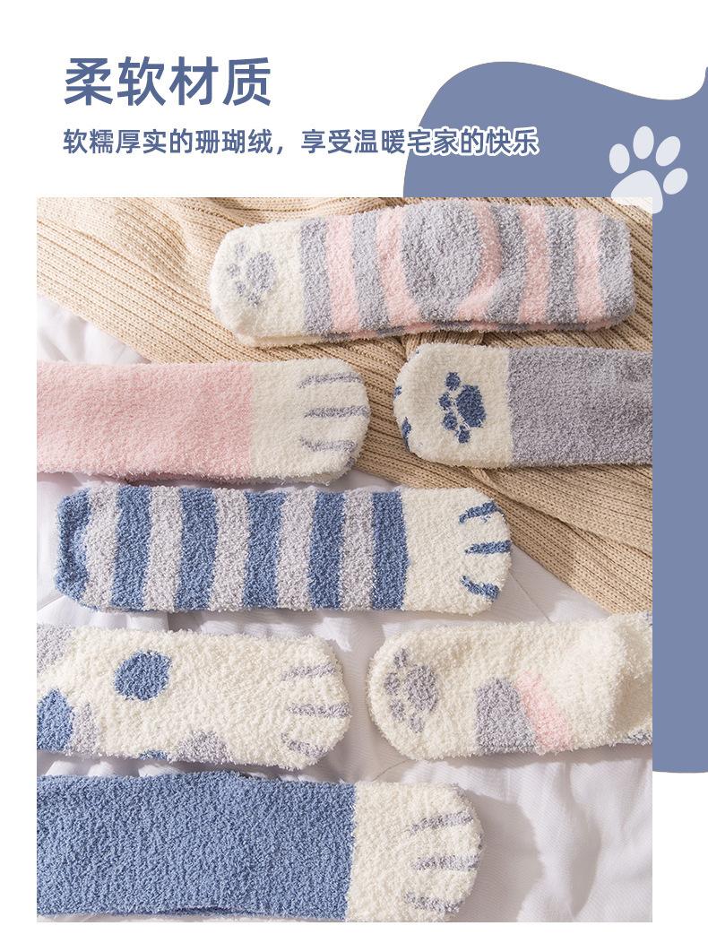 Calcetines de Vellón Coral con Garra de Gato para Mujer, Calcetines Gruesos y Cálidos con Forro de Vellón de Nuevo Estilo para Dormir, Calcetines de Piso Felpa Casual para Casa de Mujer