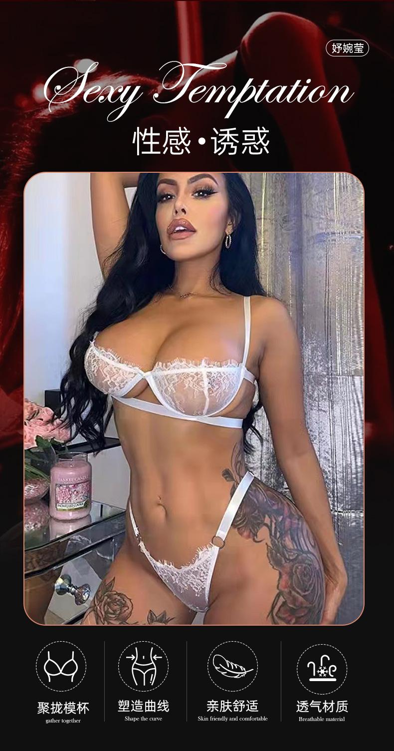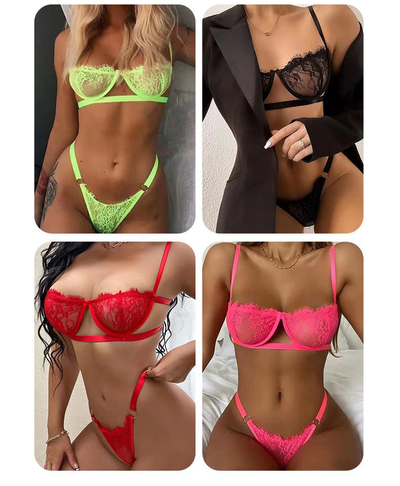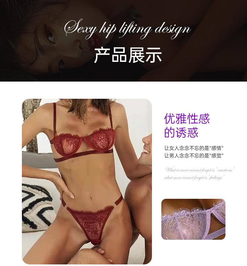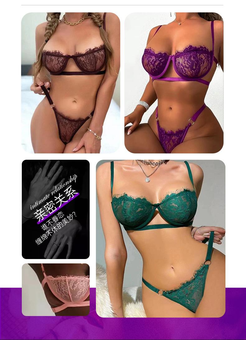Anillo de Acero Popular para Mujer Europea y Americana Sexy Transparente Encaje Conjunto de Ropa Interior Listo para la Venta Fabricante Venta al por Mayor