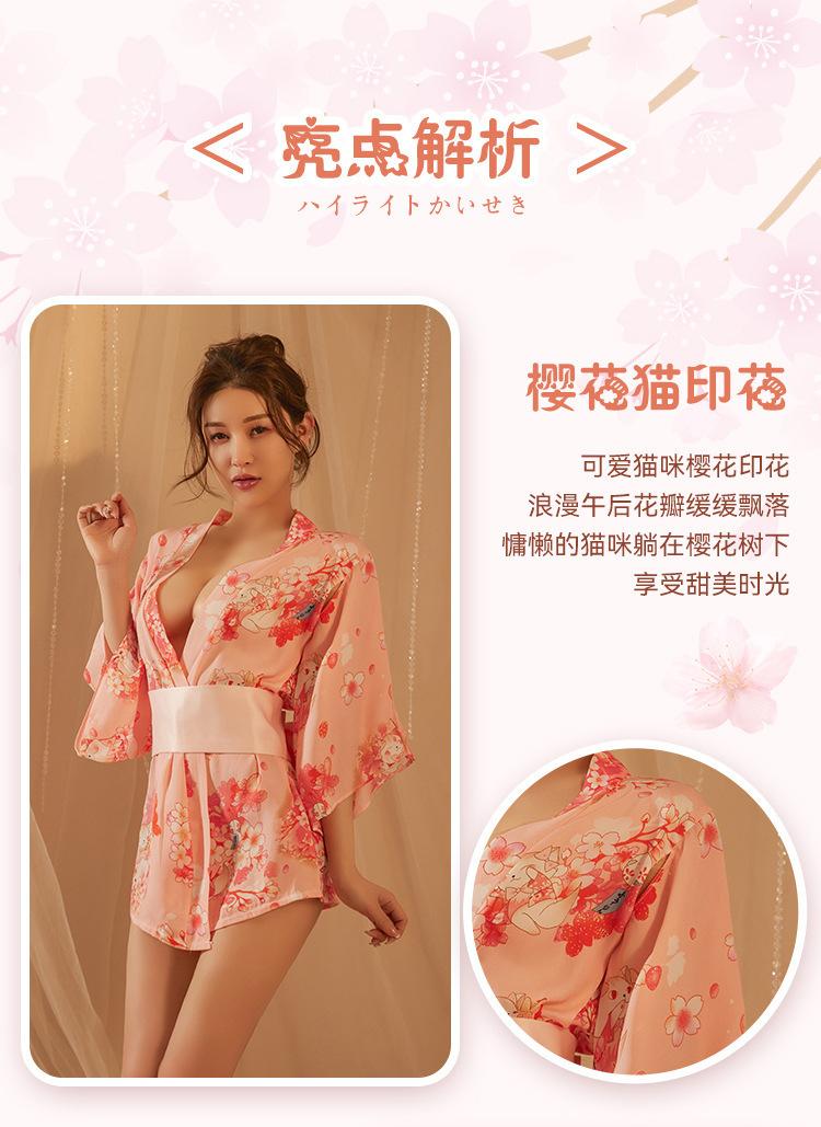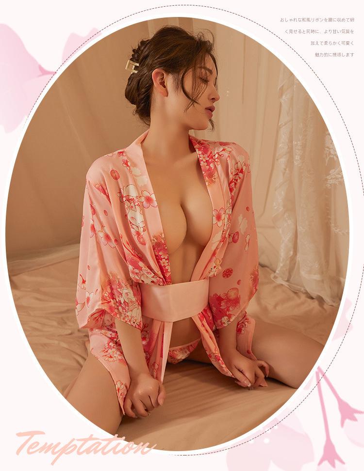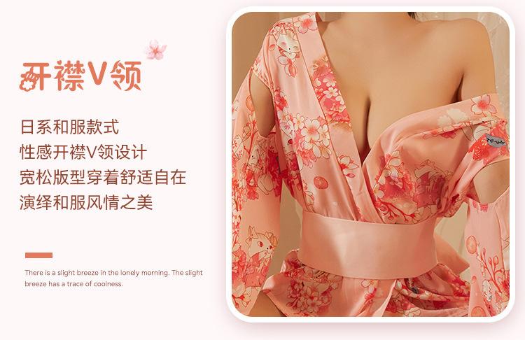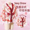 Lencería Sexy, Kimono Sexy Estilo Japonés Retro Estampado, Cinturón, Pijama con Aberturas, Uniforme de Pasión Femenina, Camisón de Tentación