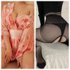 Kimono nightgown + belt, Kimono nightgown + belt + black fishnet stockings, Kimono nightgown + belt + black st...