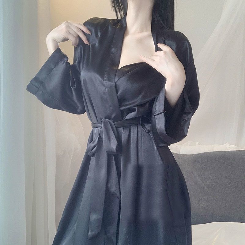 Pijama coreano de primavera y otoño para mujer de seda de hielo, bata blanca sexy de estilo japonés fina de verano para mujer joven, ropa de estar suelta