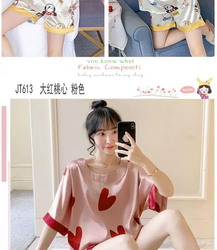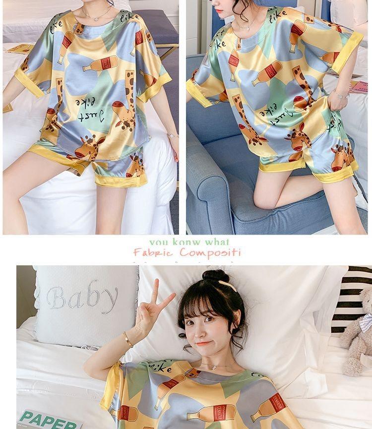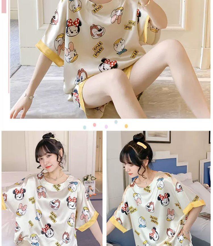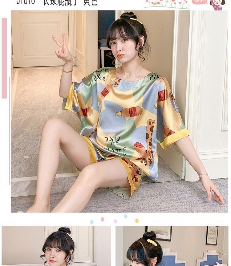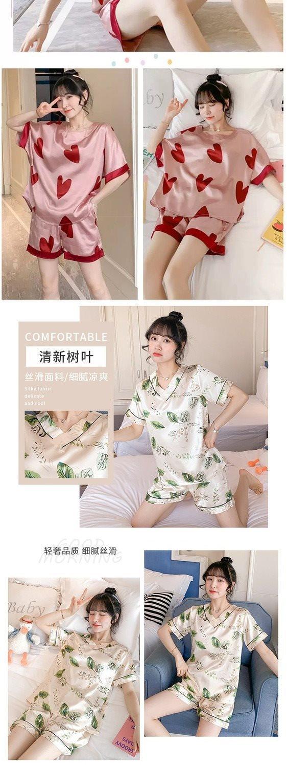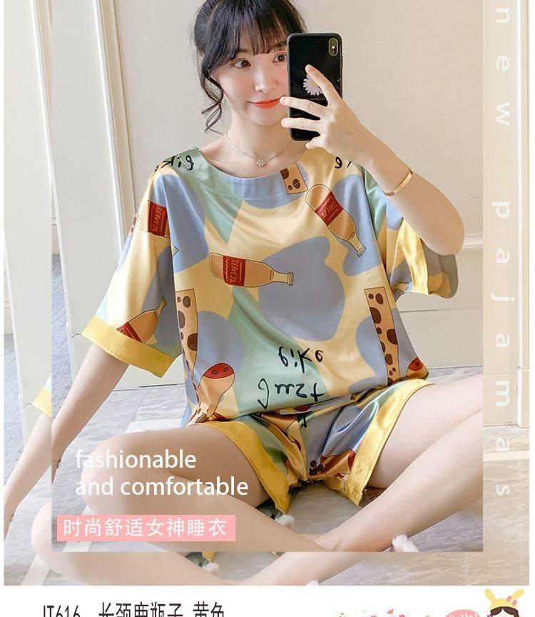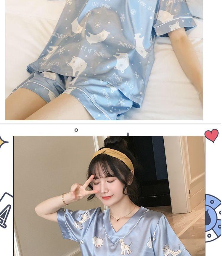 Pijamas para Mujer Verano Seda de Hielo Sexy Estilo Coreano Delgadas Manga Corta Traje de Dos Piezas Verano Shorts para Mujer Talla Grande Ropa para el Hogar