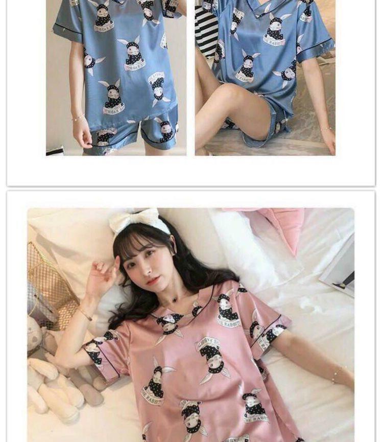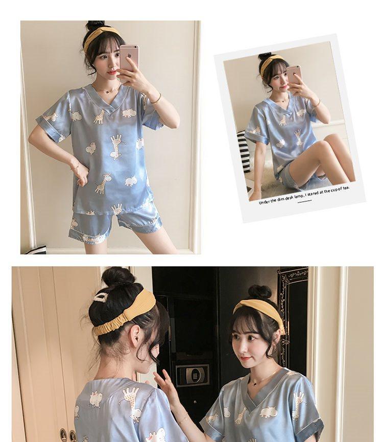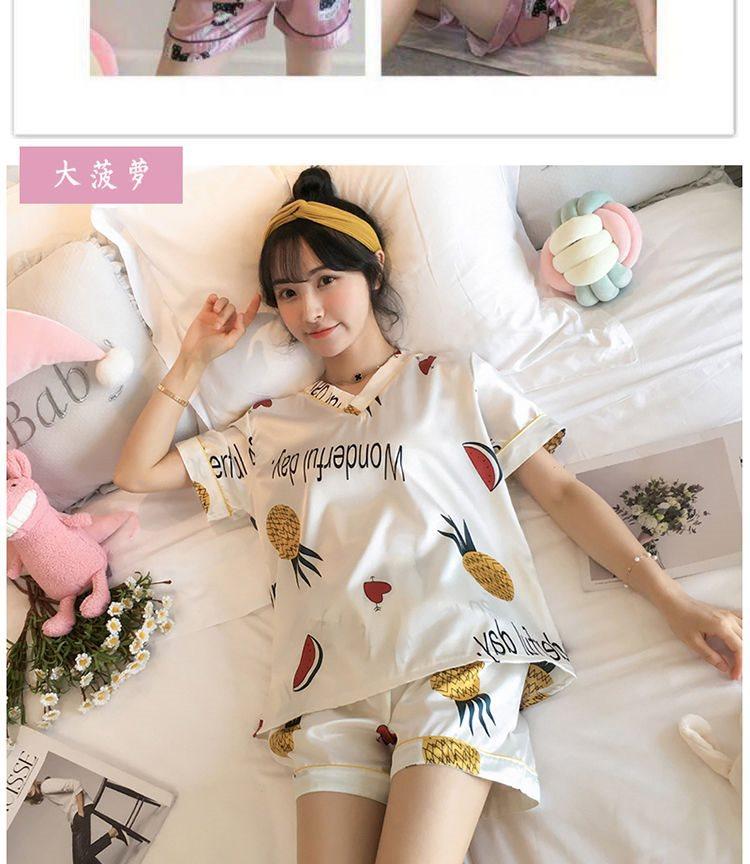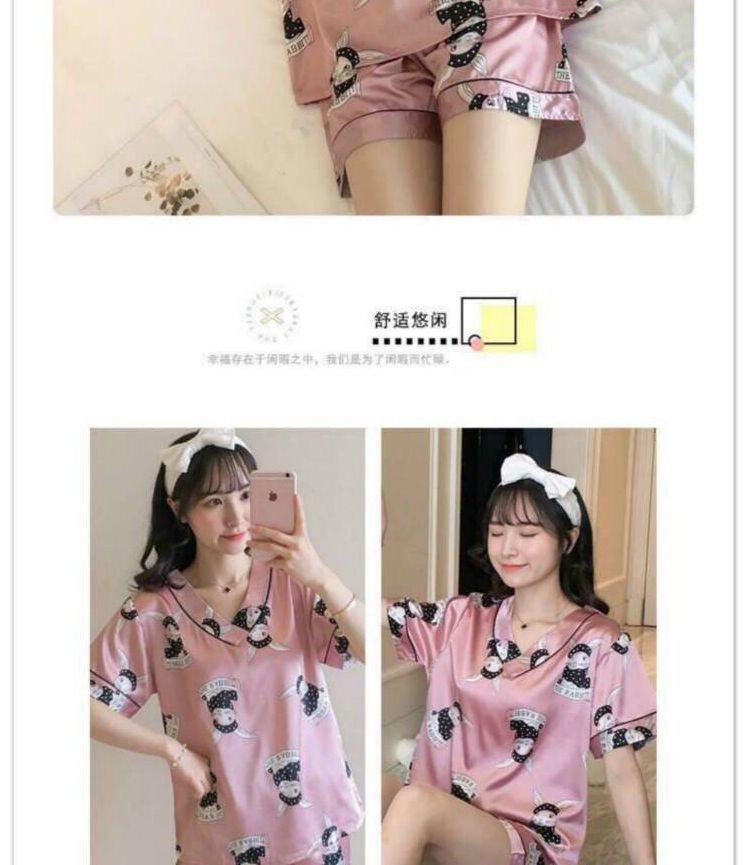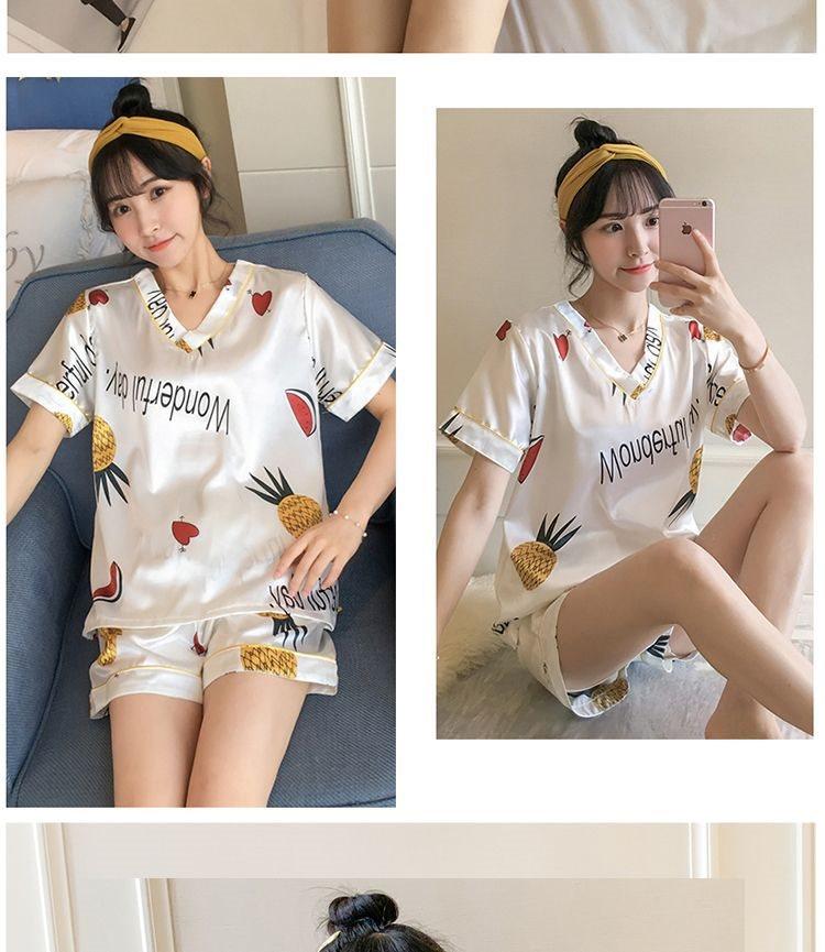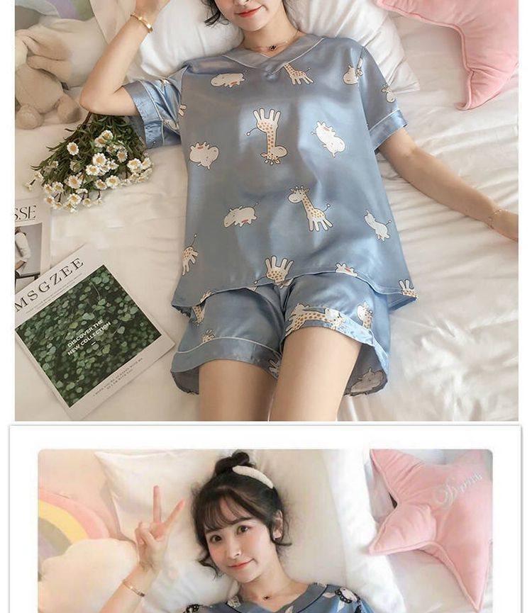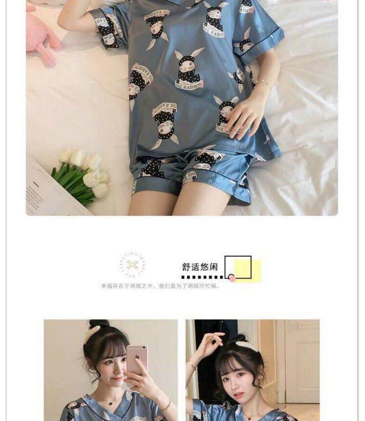 Pijamas para Mujer Verano Seda de Hielo Sexy Estilo Coreano Delgadas Manga Corta Traje de Dos Piezas Verano Shorts para Mujer Talla Grande Ropa para el Hogar
