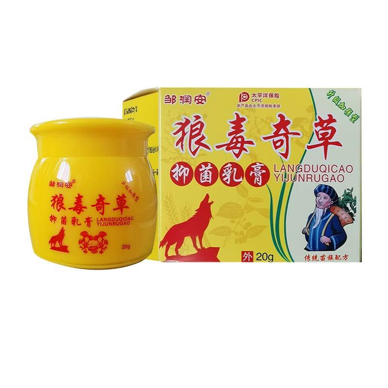 Crema Antibacteriana Zou Runan Wolfsbane Qicao Caja Cuadrada 20g Uso Externo para la Piel